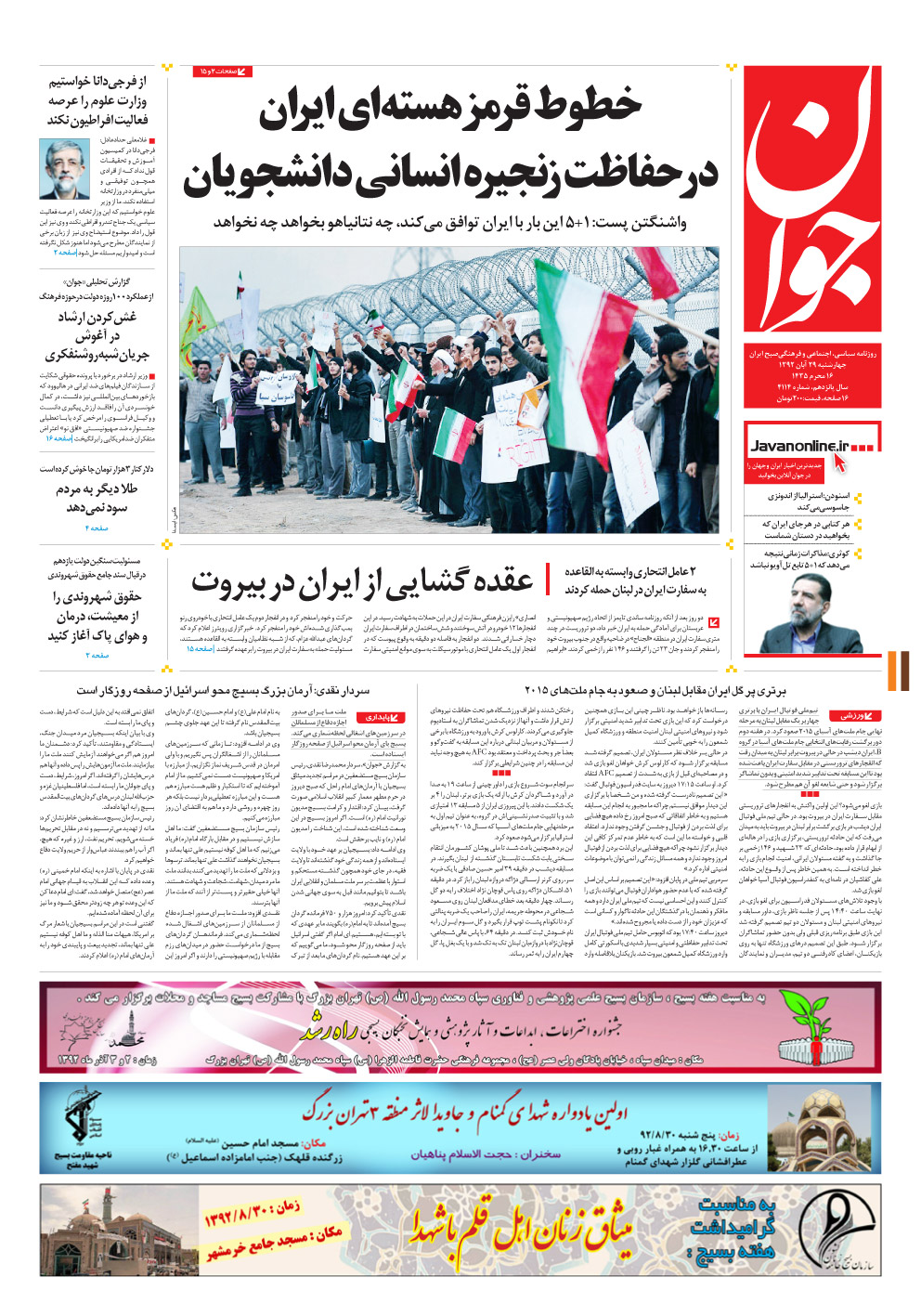 روزنامه جوان - چهارشنبه ۲۹ آبان ۱۳۹۲ - شماره ۴۱۱۴