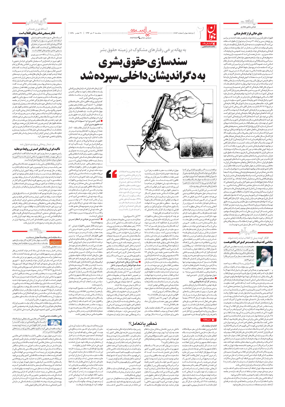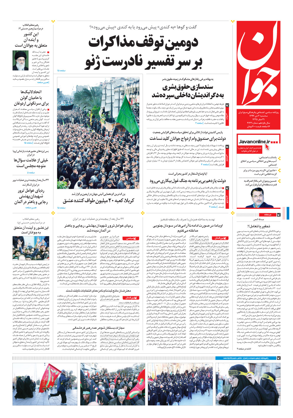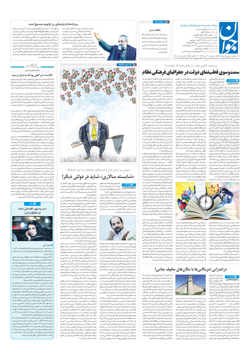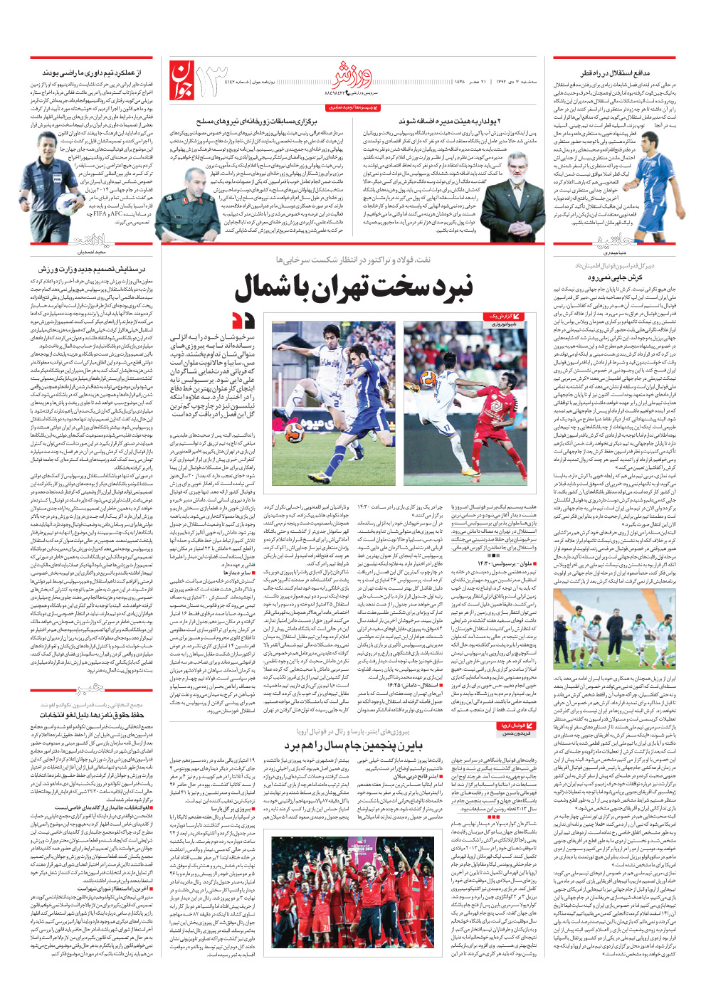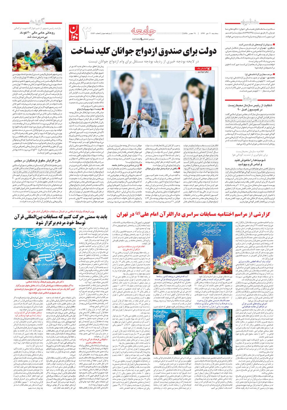 روزنامه جوان - سه‌شنبه ۰۳ دی ۱۳۹۲ - شماره ۴۱۴۲