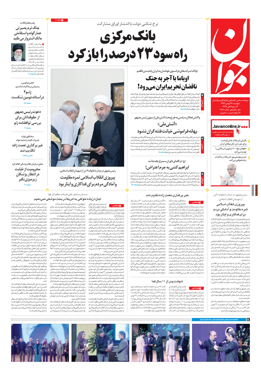 روزنامه جوان - پنجشنبه ۲۴ بهمن ۱۳۹۲ - شماره ۴۱۸۱