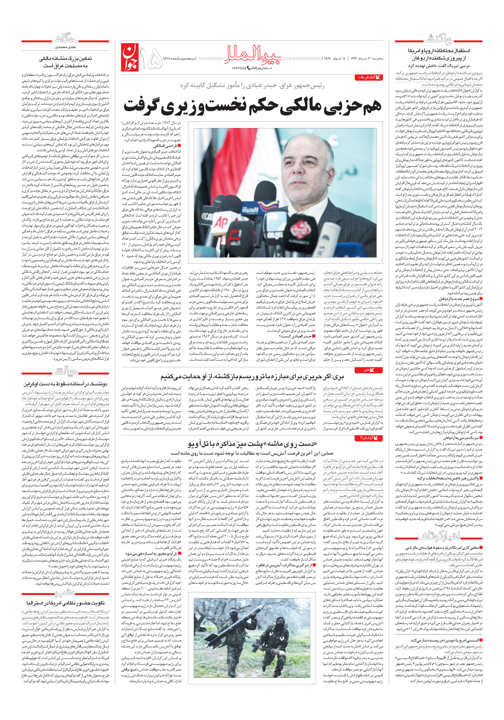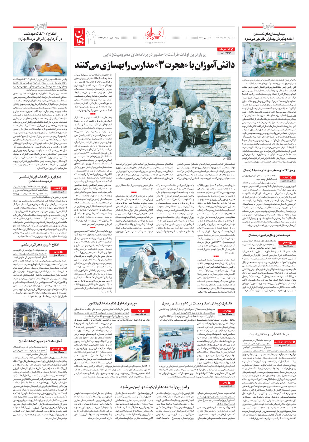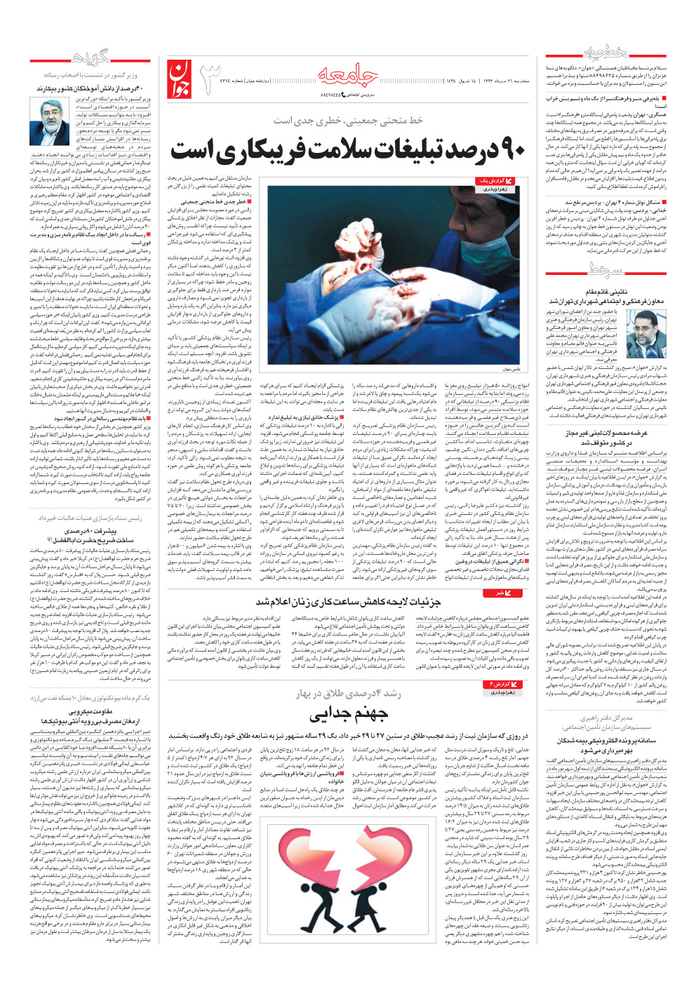 روزنامه جوان - سهشنبه ۲۱ مرداد ۱۳۹۳ - شماره ۴۳۱۴