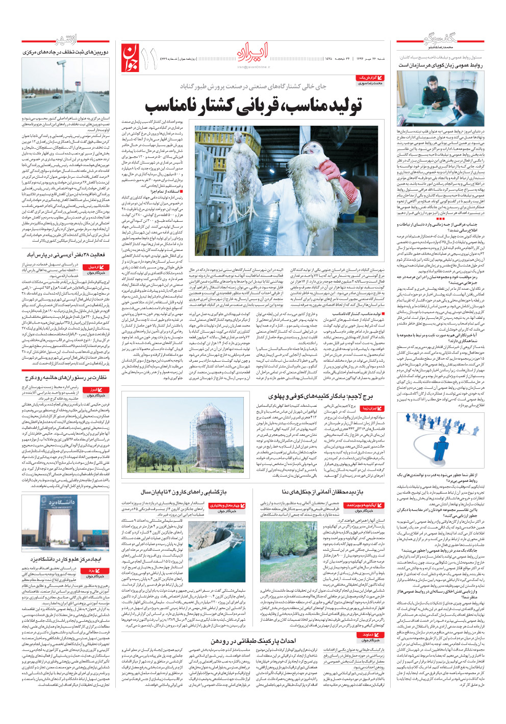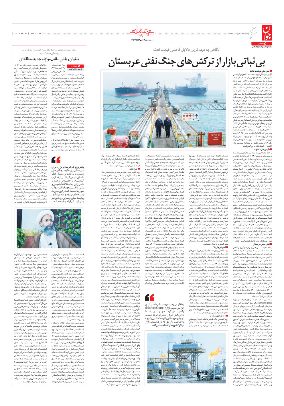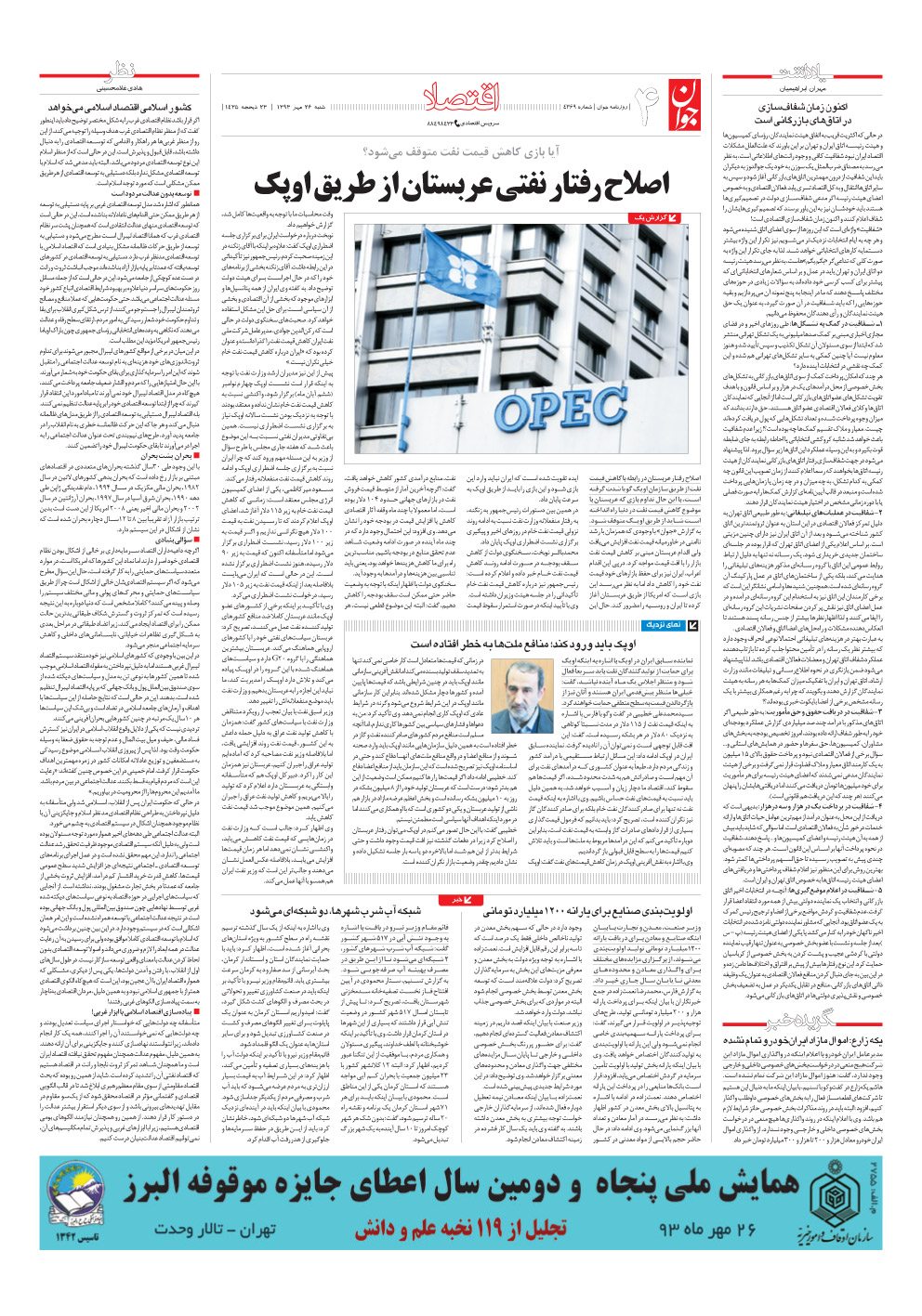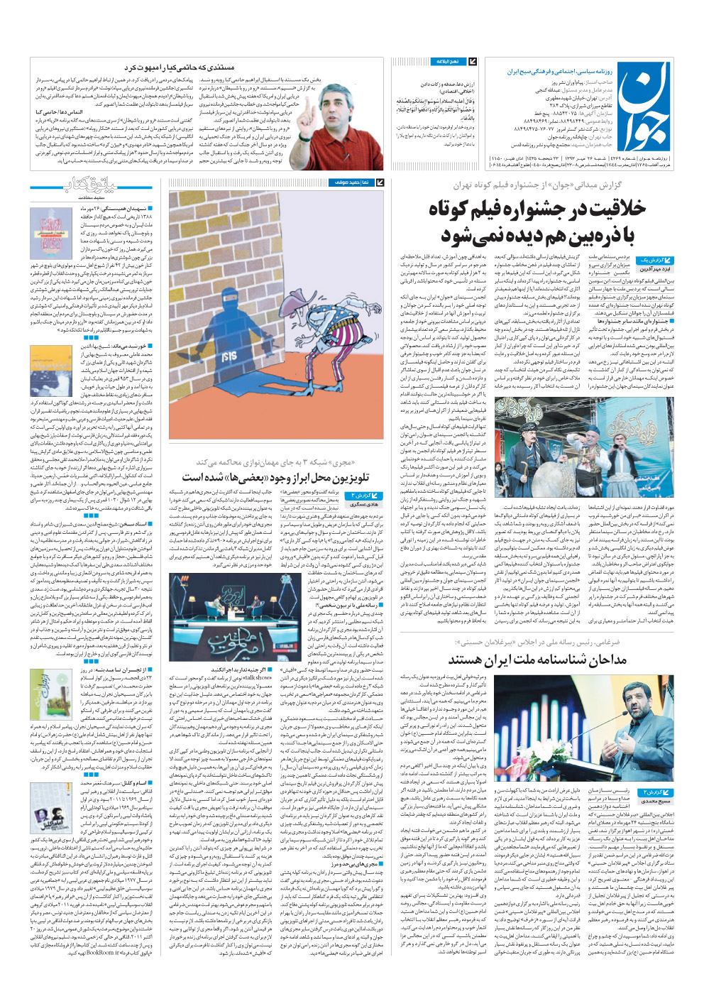 روزنامه جوان - شنبه ۲۶ مهر ۱۳۹۳ - شماره ۴۳۶۹