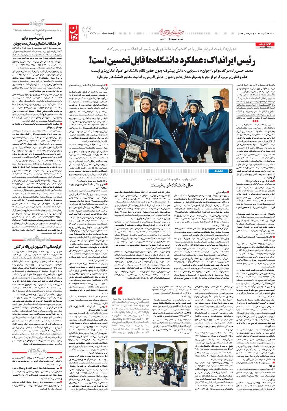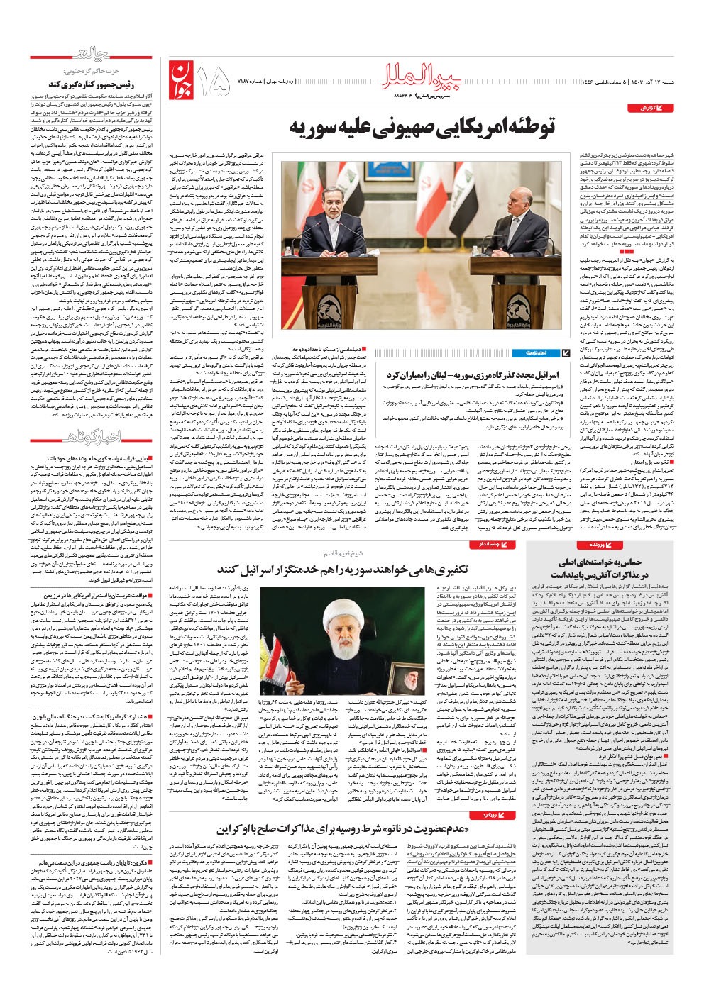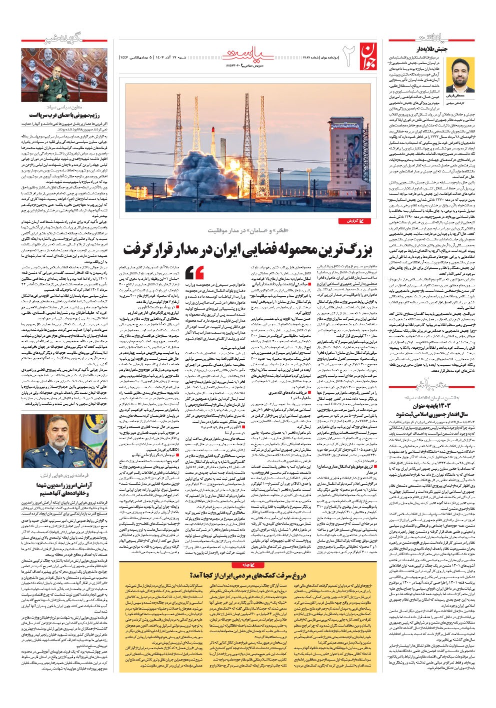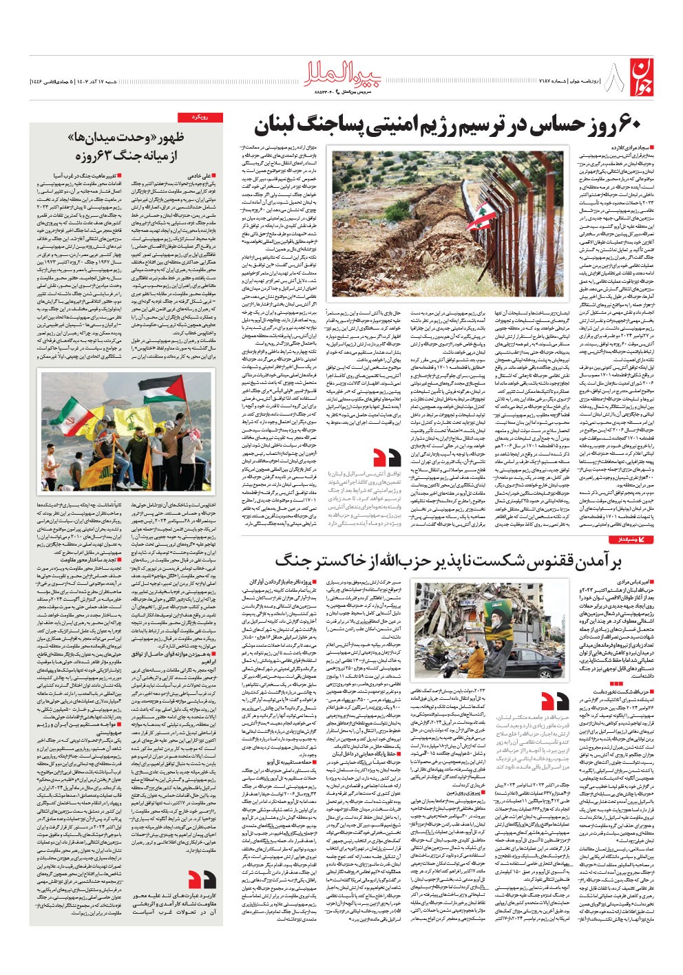 روزنامه جوان - شنبه ۱۷ آذر ۱۴۰۳ - شماره ۷۱۸۷