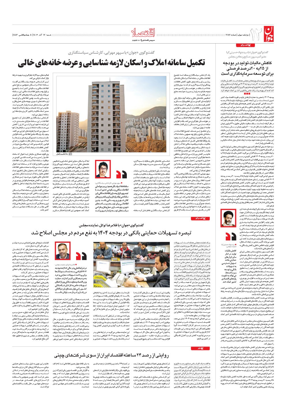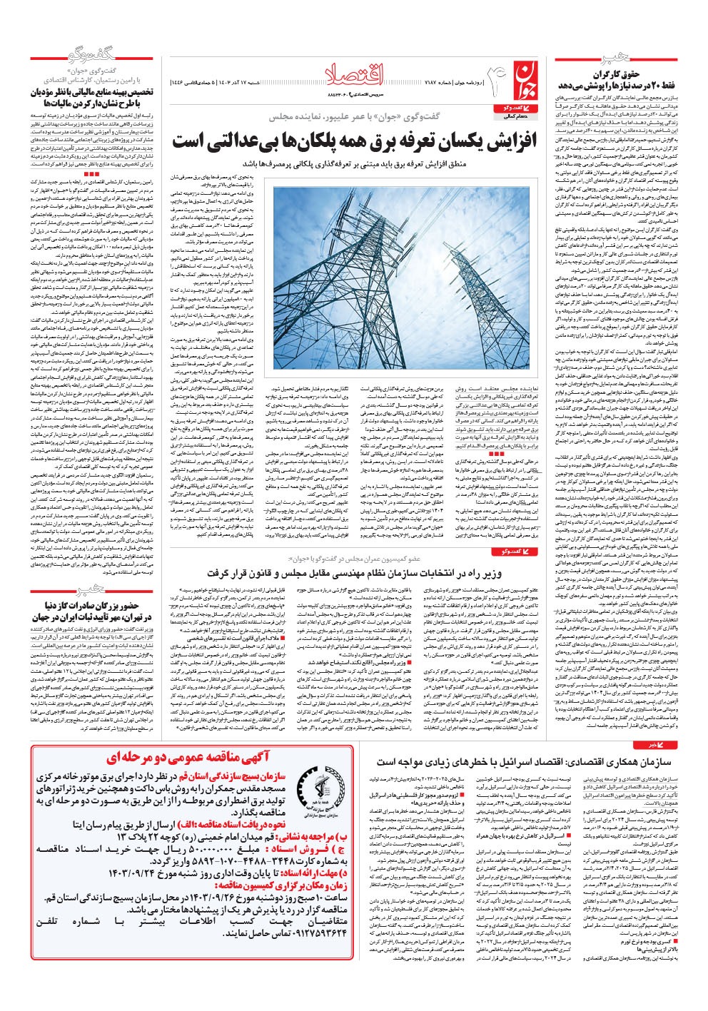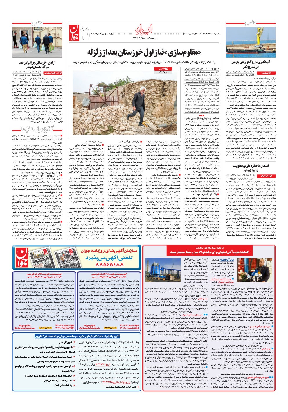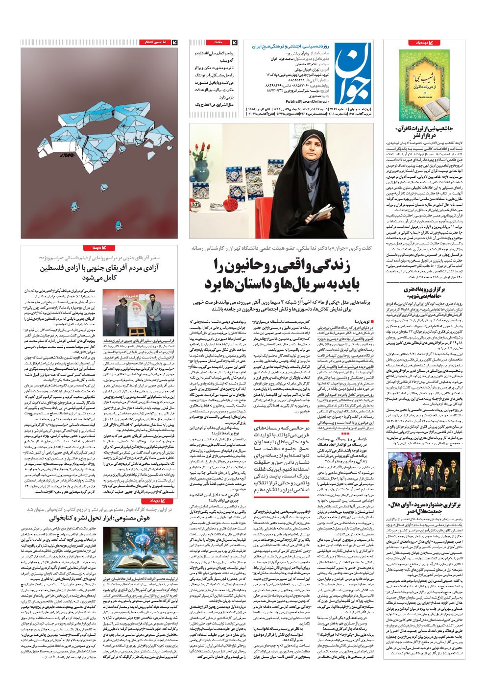 روزنامه جوان - شنبه ۱۷ آذر ۱۴۰۳ - شماره ۷۱۸۷