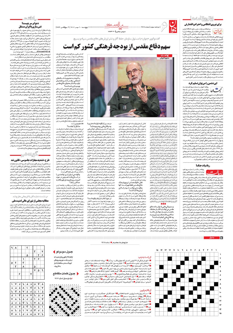 روزنامه جوان - پنجشنبه ۱۰ مهر ۱۴۰۴ - شماره ۷۴۱۴