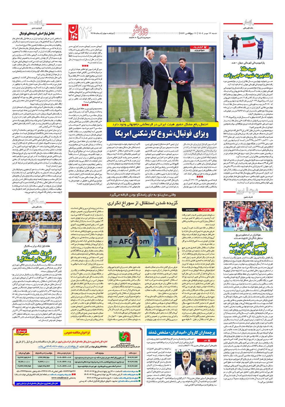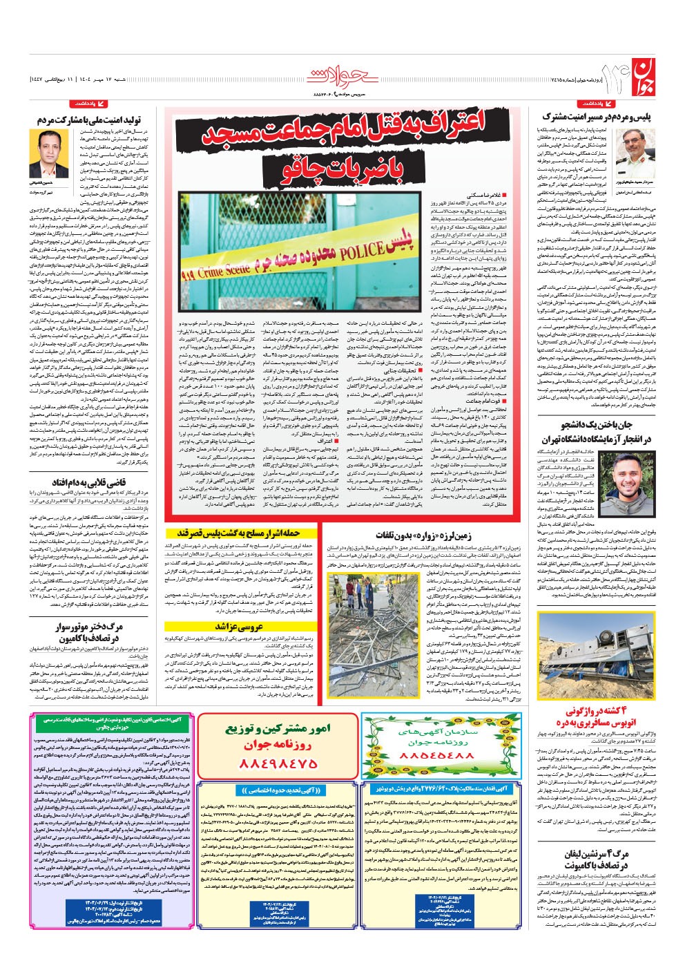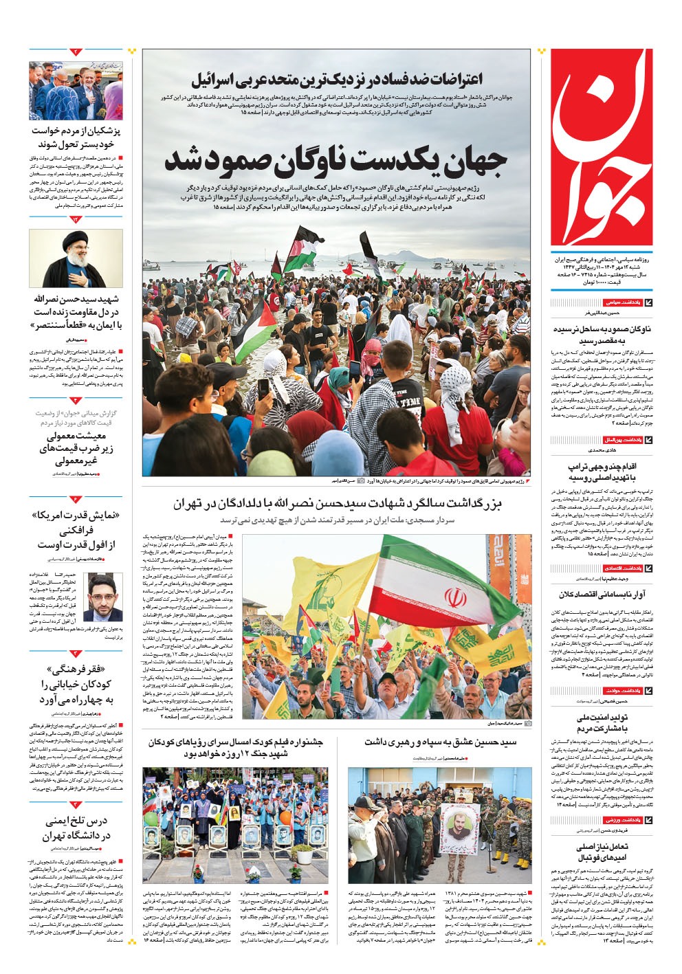 روزنامه جوان - شنبه ۱۲ مهر ۱۴۰۴ - شماره ۷۴۱۵
