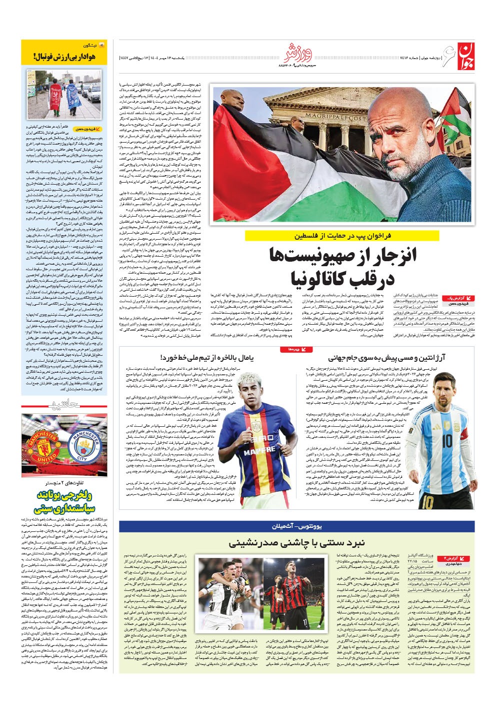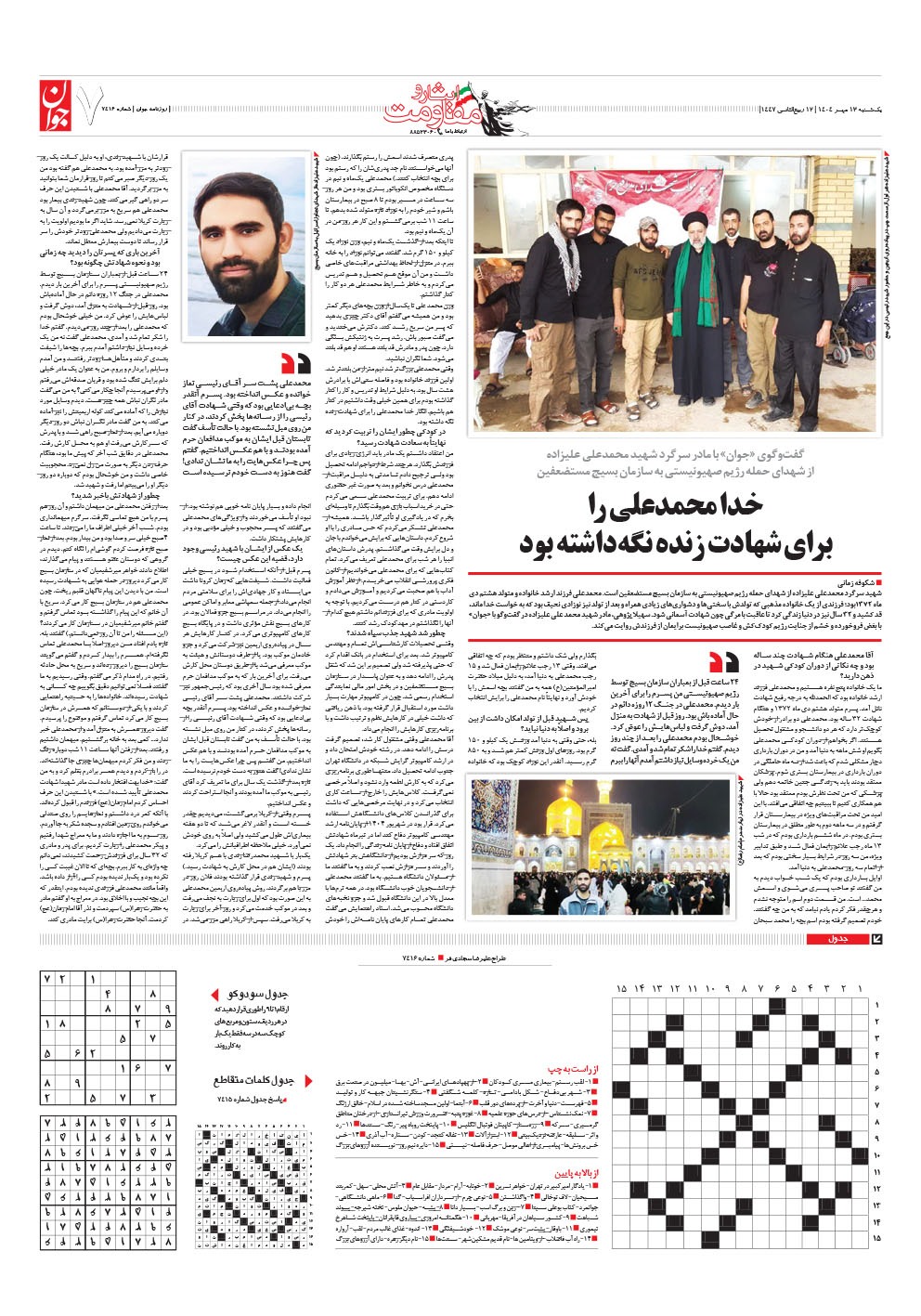 روزنامه جوان - يکشنبه ۱۳ مهر ۱۴۰۴ - شماره ۷۴۱۶