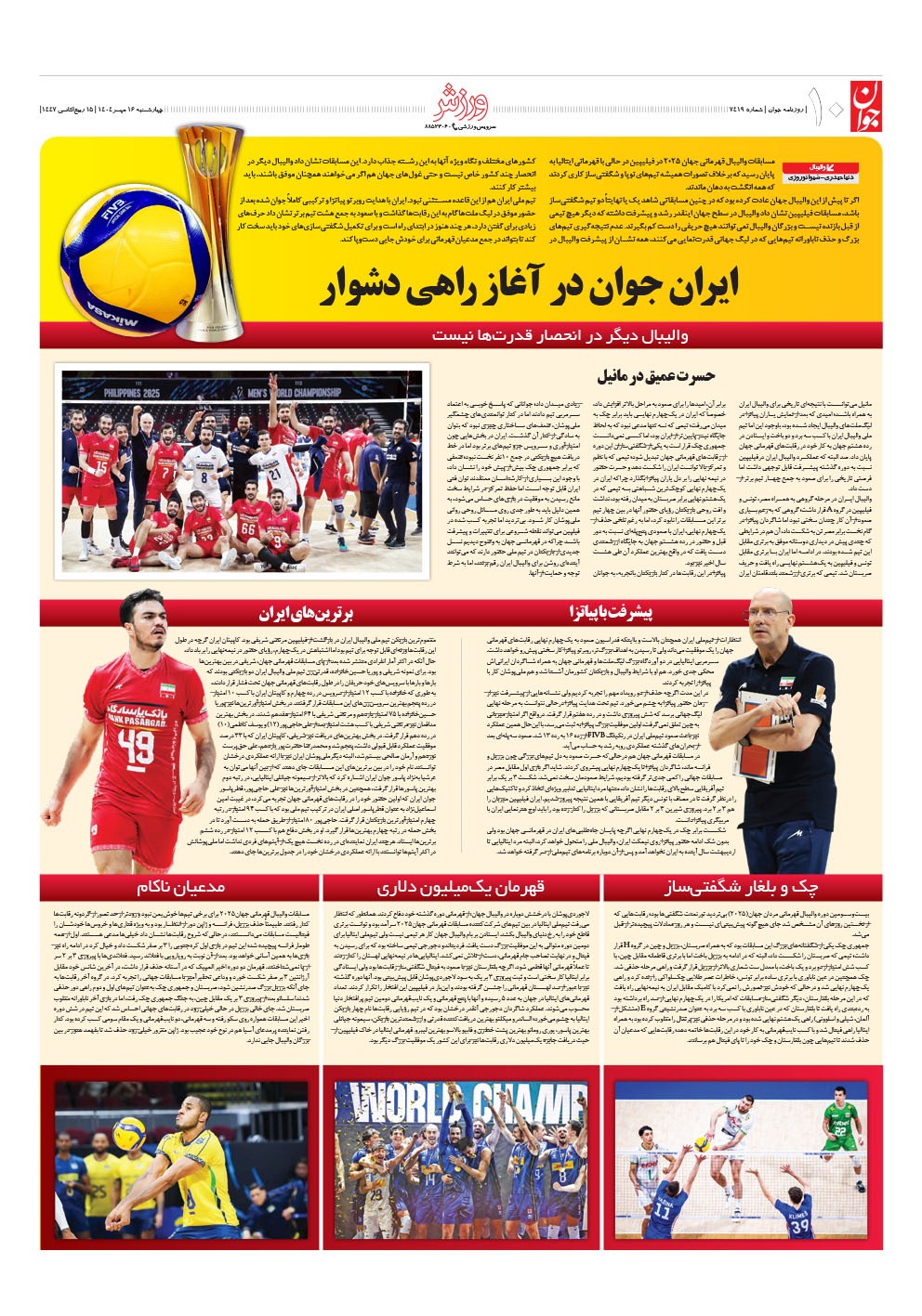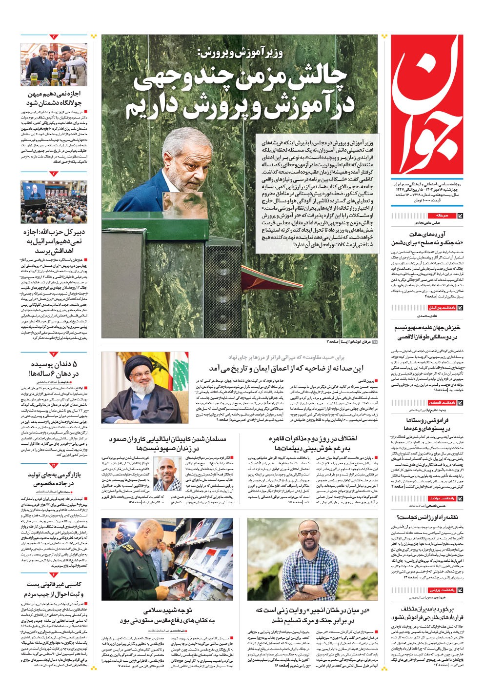 روزنامه جوان - چهارشنبه ۱۶ مهر ۱۴۰۴ - شماره ۷۴۱۹
