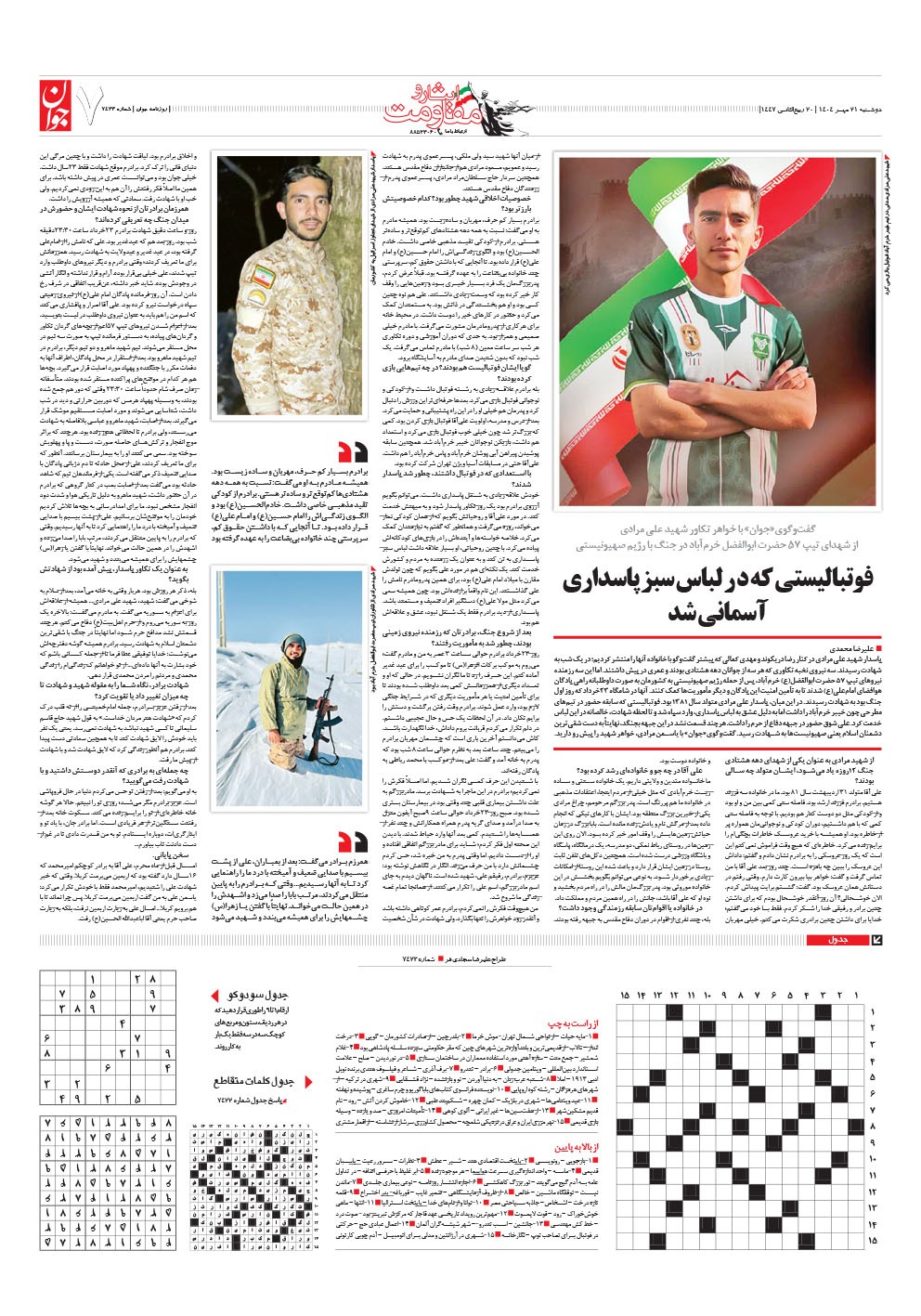 روزنامه جوان - دوشنبه ۲۱ مهر ۱۴۰۴ - شماره ۷۴۲۳