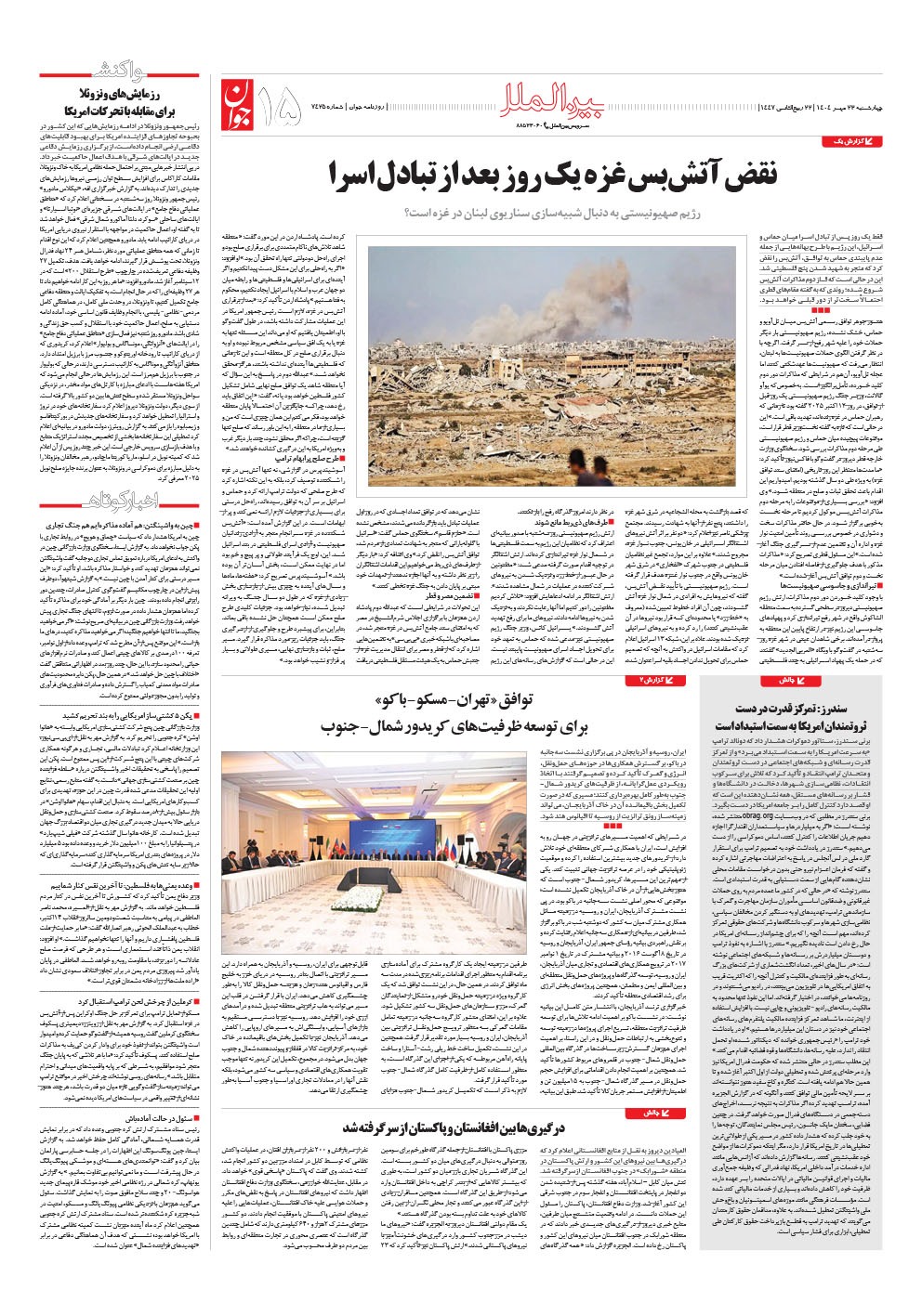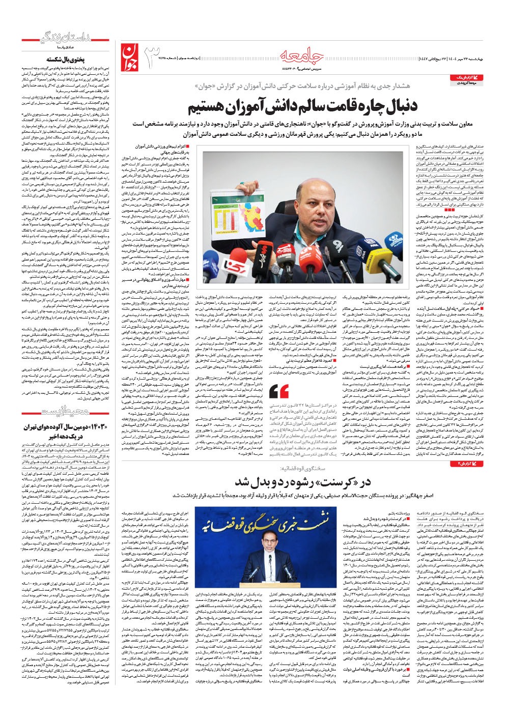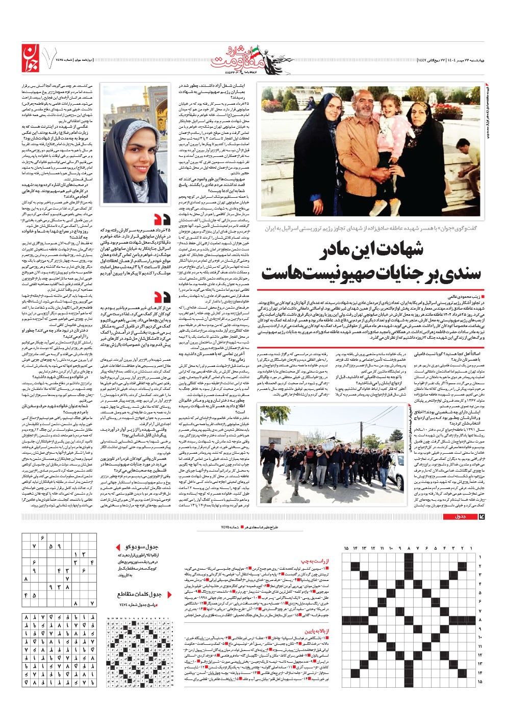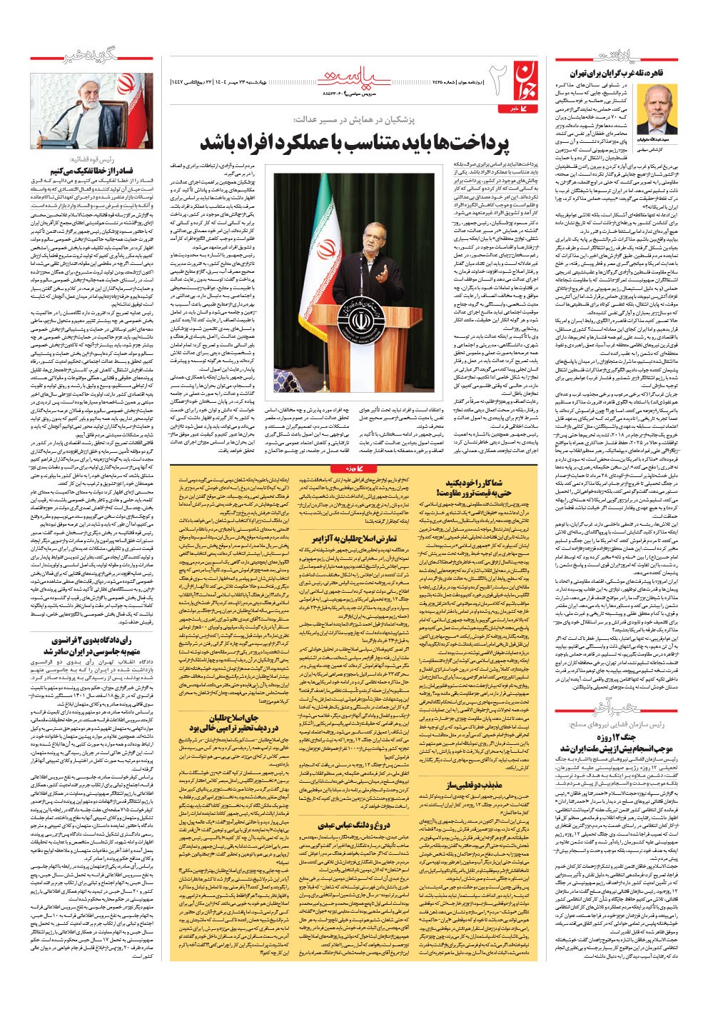 روزنامه جوان - چهارشنبه ۲۳ مهر ۱۴۰۴ - شماره ۷۴۲۵