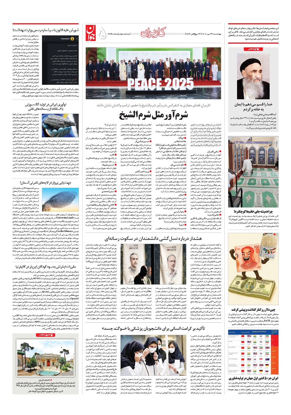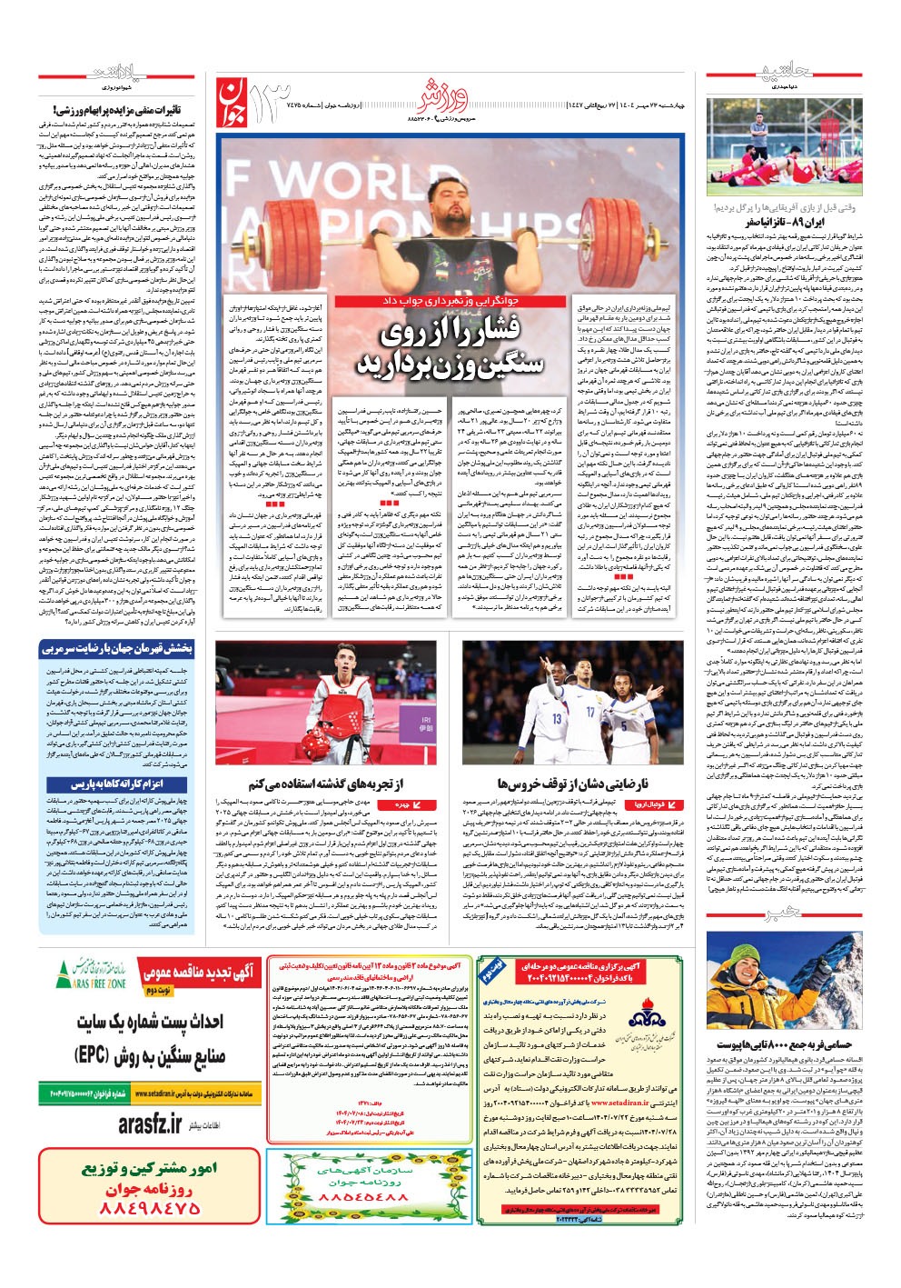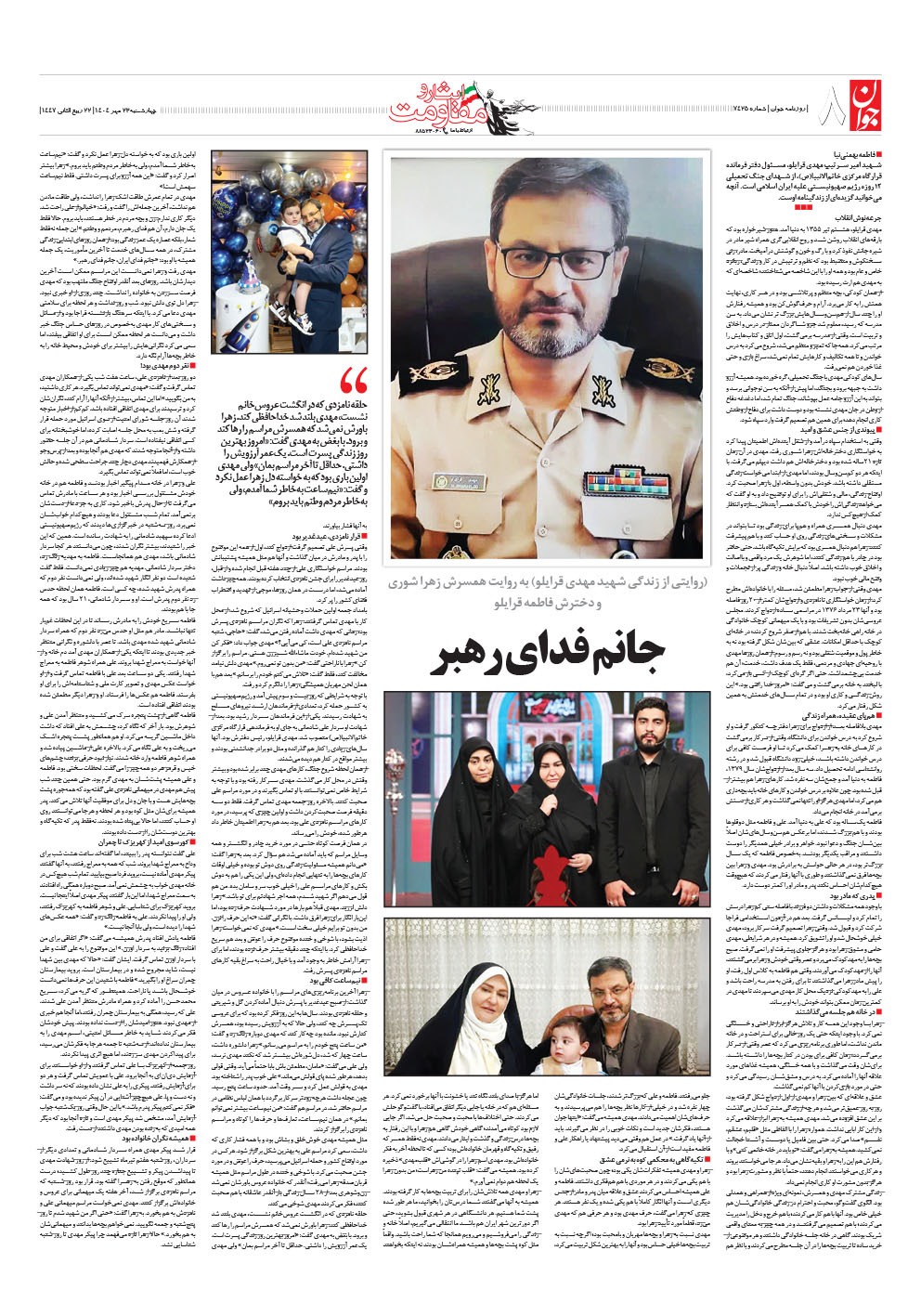 روزنامه جوان - چهارشنبه ۲۳ مهر ۱۴۰۴ - شماره ۷۴۲۵