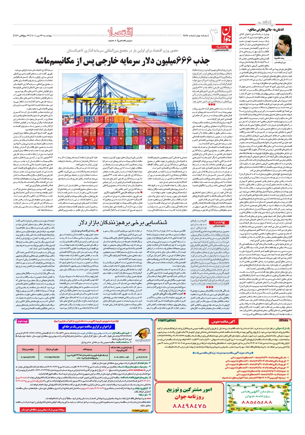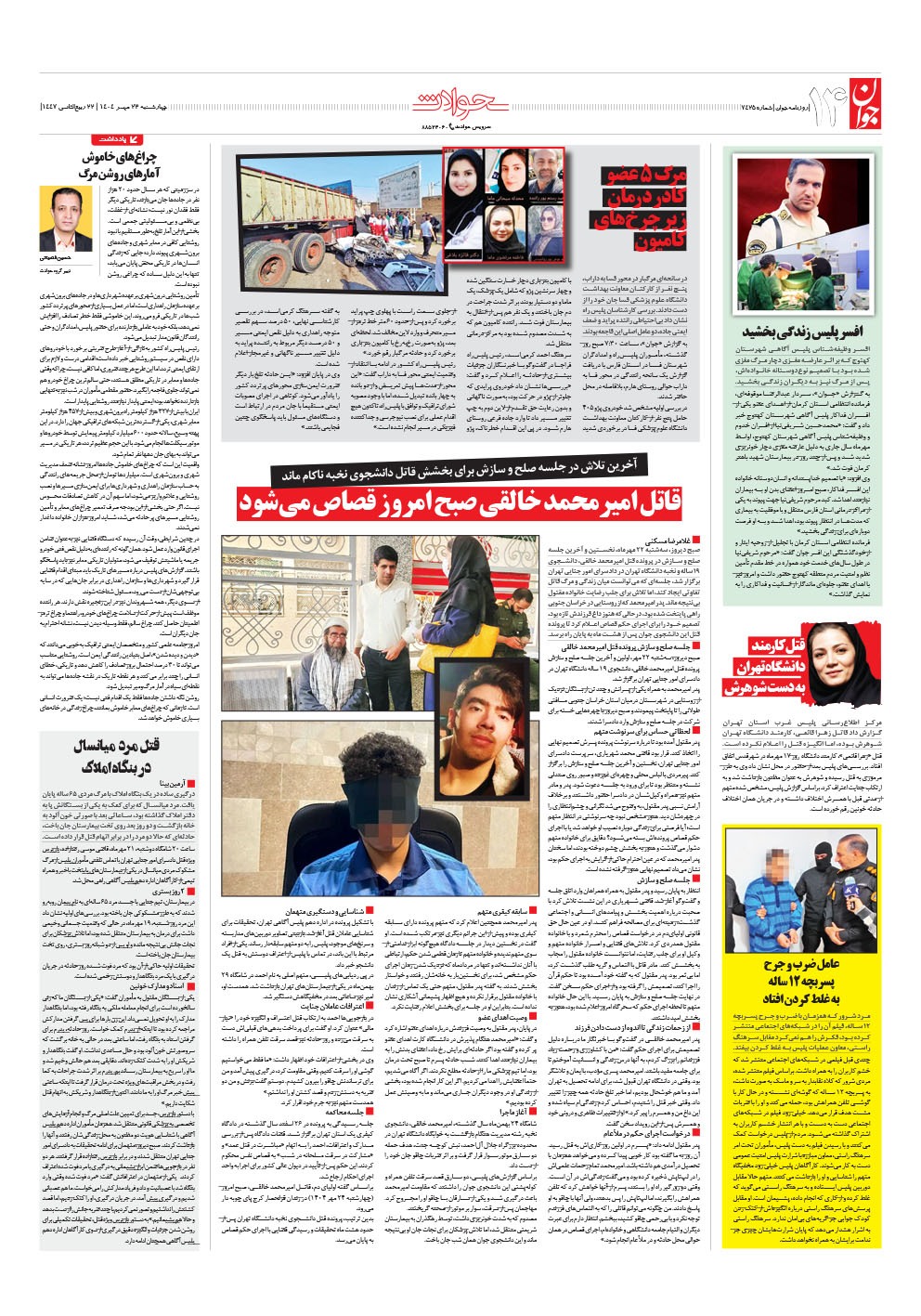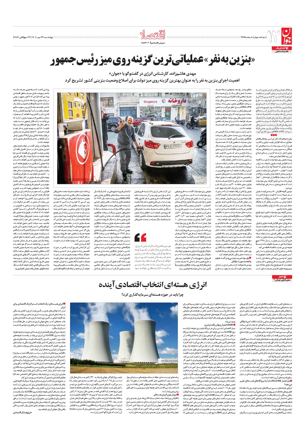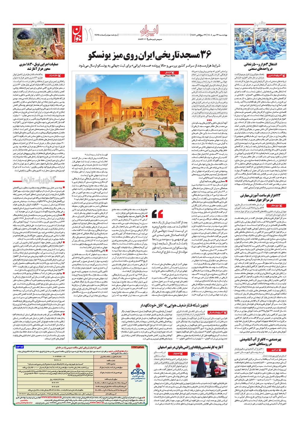 روزنامه جوان - چهارشنبه ۲۳ مهر ۱۴۰۴ - شماره ۷۴۲۵