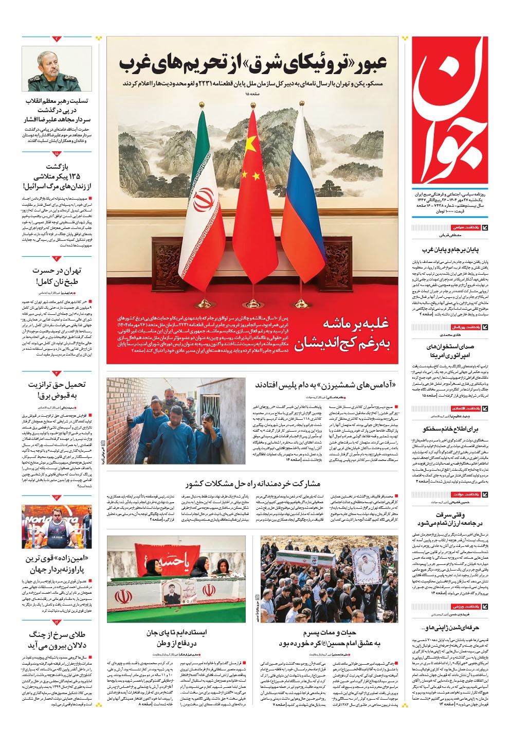 روزنامه جوان - يکشنبه ۲۷ مهر ۱۴۰۴ - شماره ۷۴۲۸