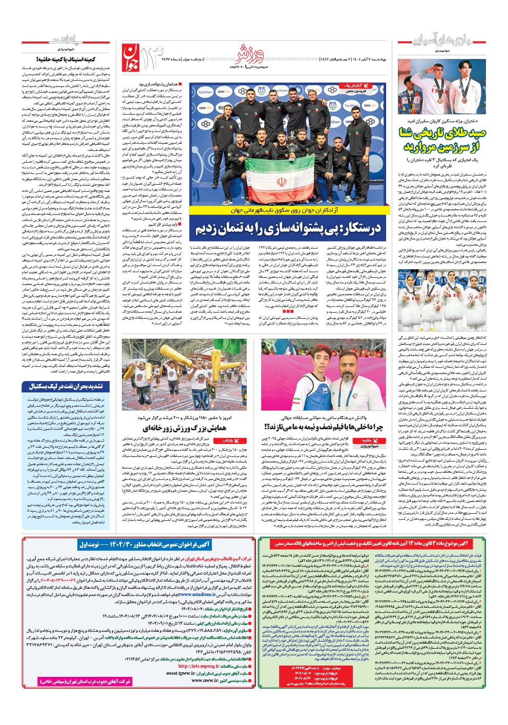 يکشنبه ۰۴ آبان ۱۴۰۴ | روزنامه جوان