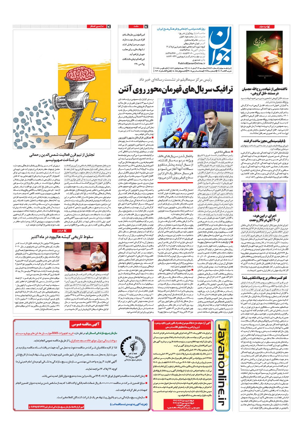 روزنامه جوان - سه‌شنبه ۱۳ آبان ۱۴۰۴ - شماره ۷۴۴۲