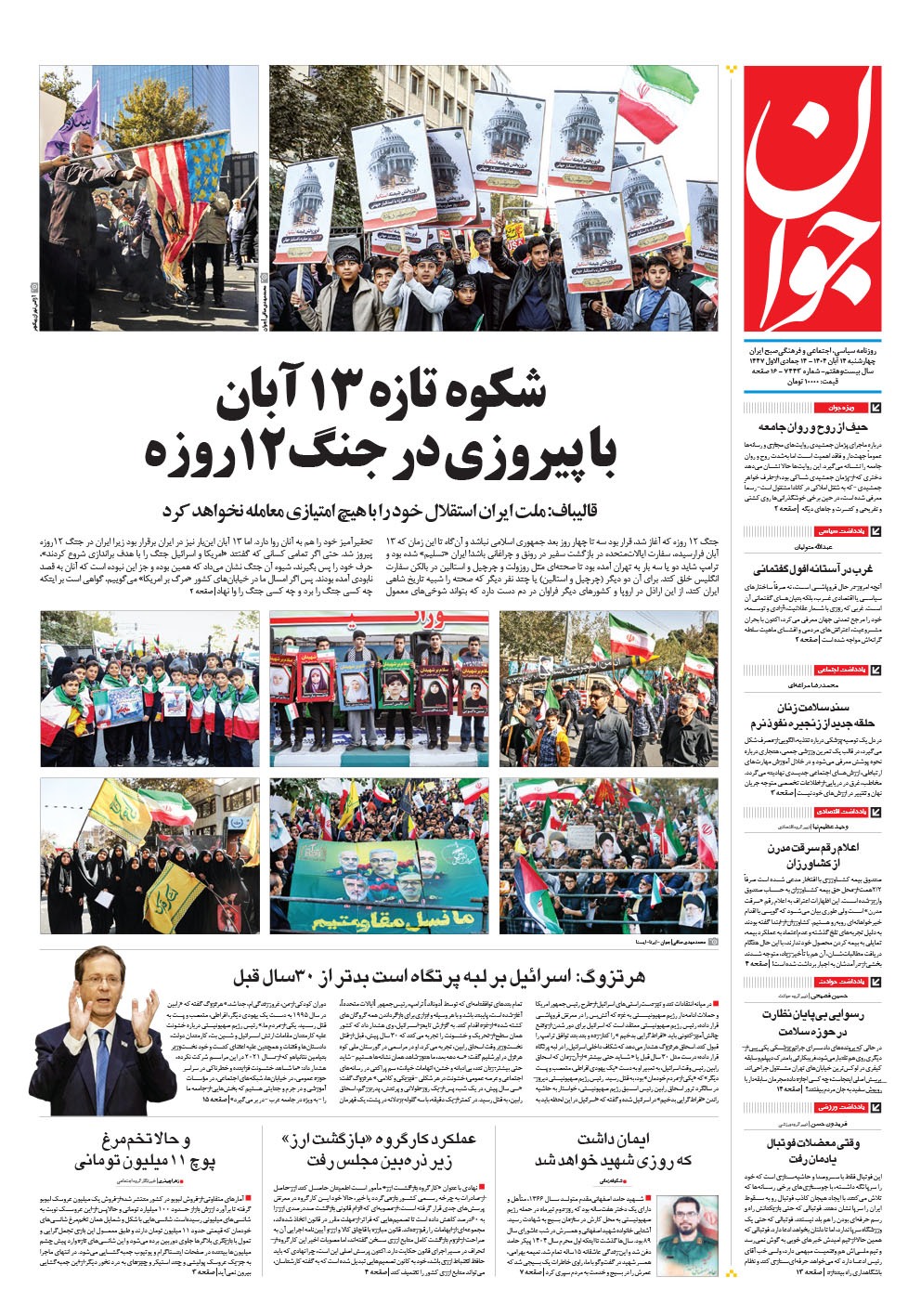 روزنامه جوان - چهارشنبه ۱۴ آبان ۱۴۰۴ - شماره ۷۴۴۳