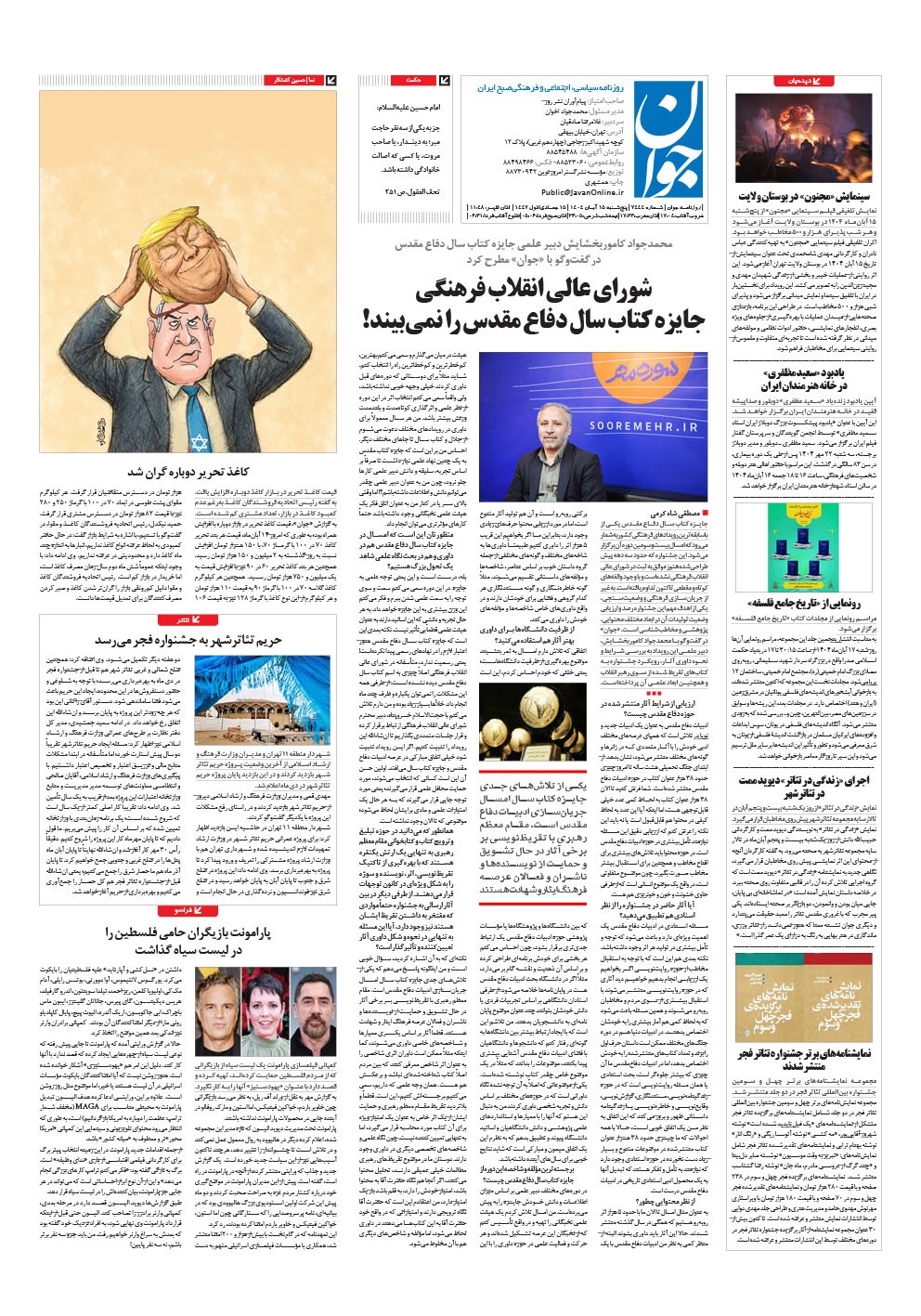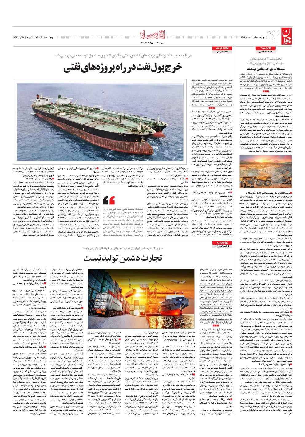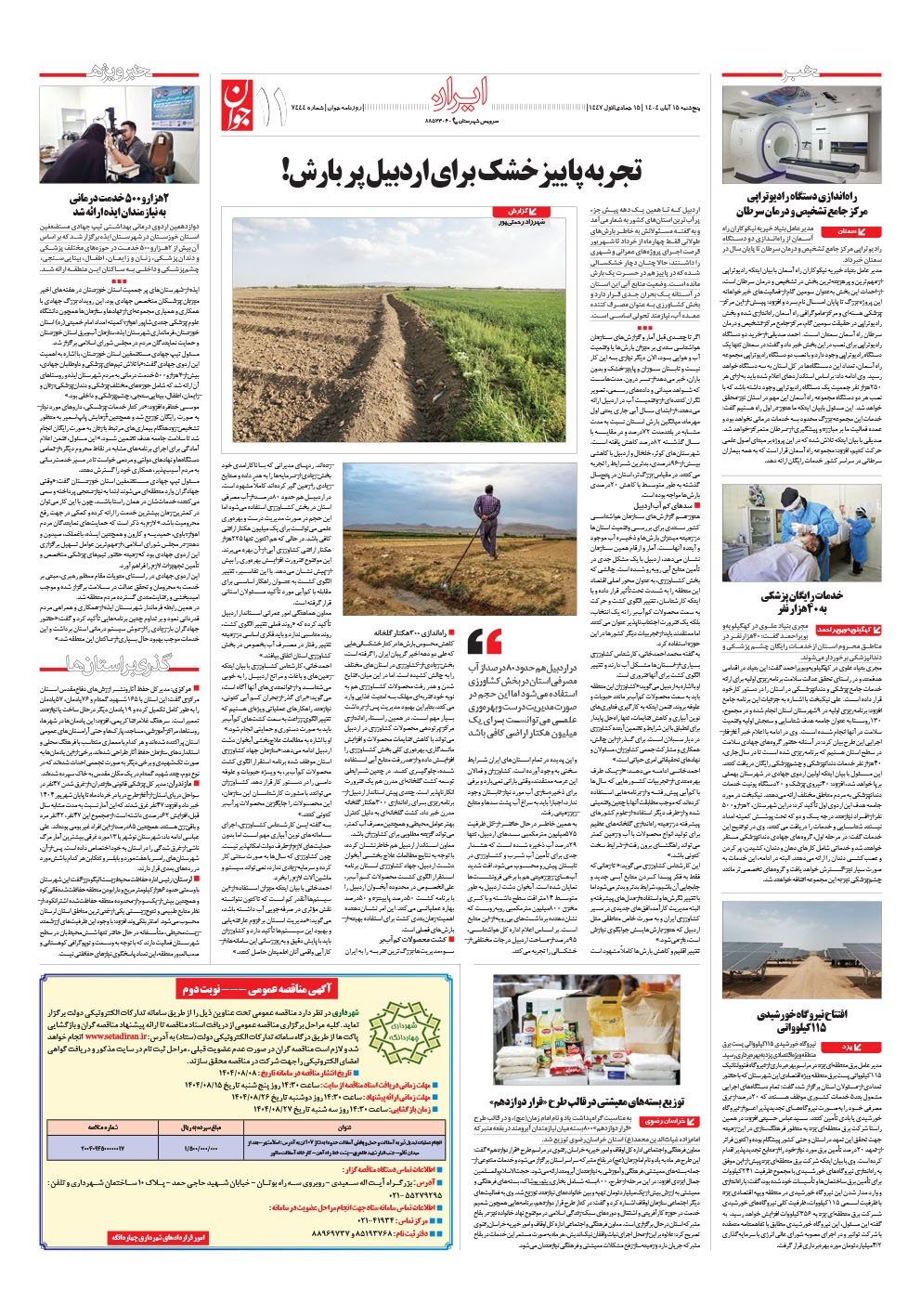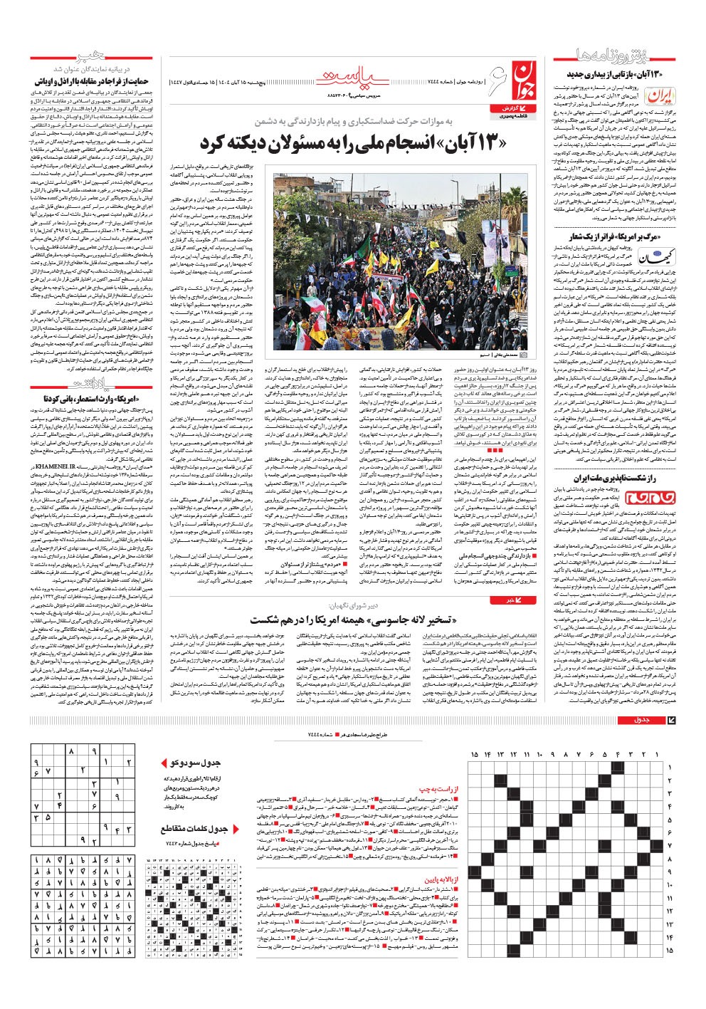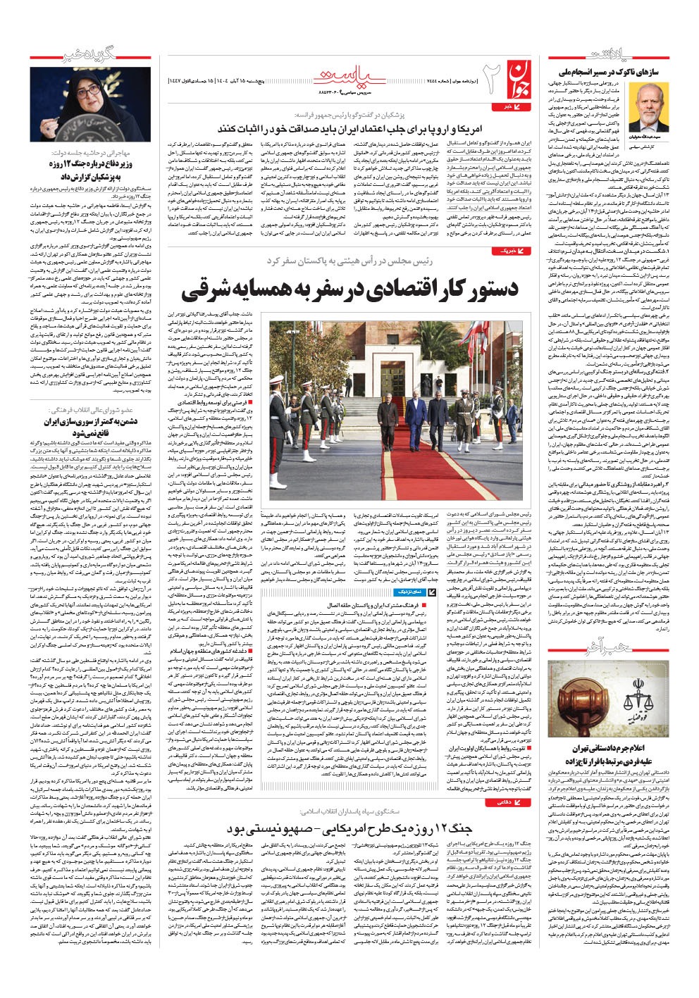 روزنامه جوان - پنجشنبه ۱۵ آبان ۱۴۰۴ - شماره ۷۴۴۴