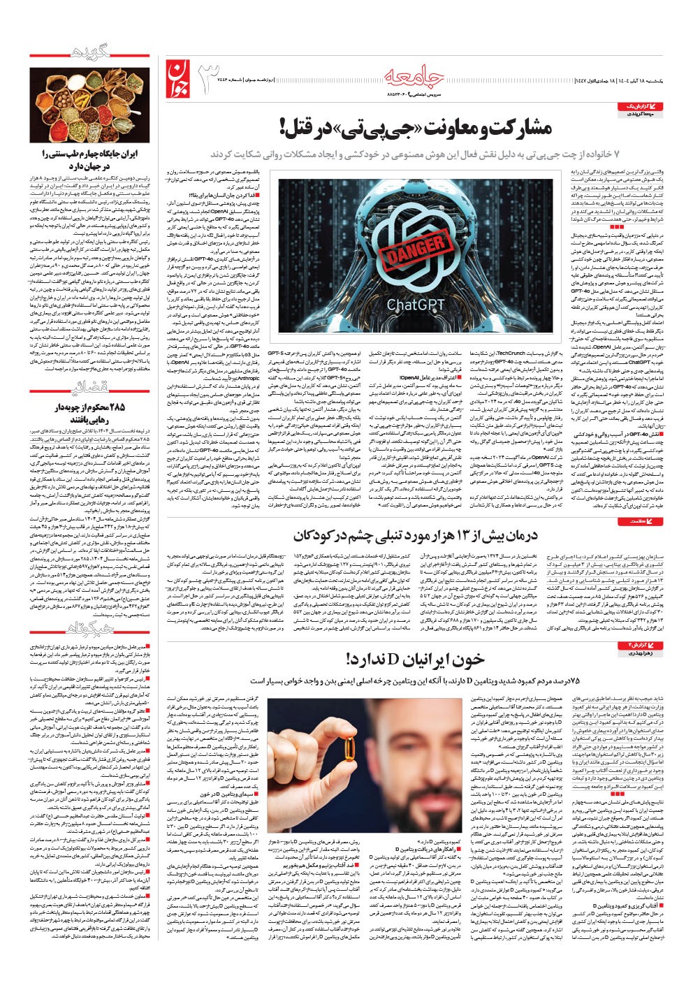 چهارشنبه ۱۴ آبان ۱۴۰۴ | روزنامه جوان