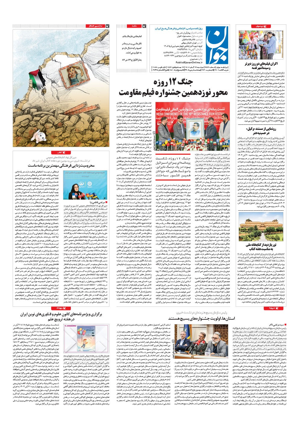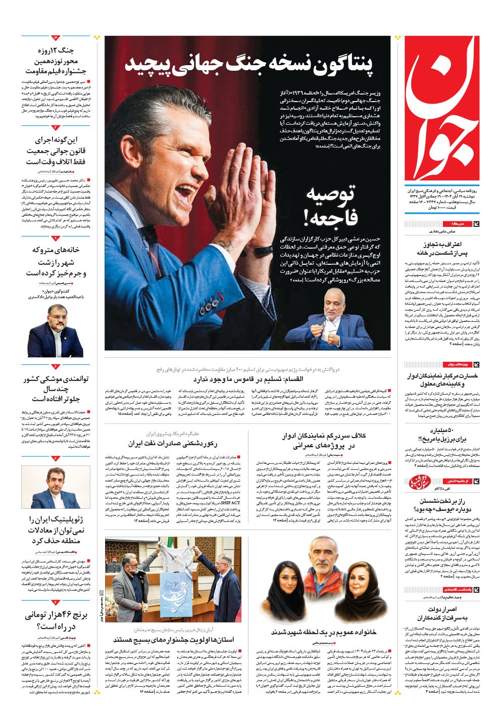 روزنامه جوان - دوشنبه ۱۹ آبان ۱۴۰۴ - شماره ۷۴۴۷