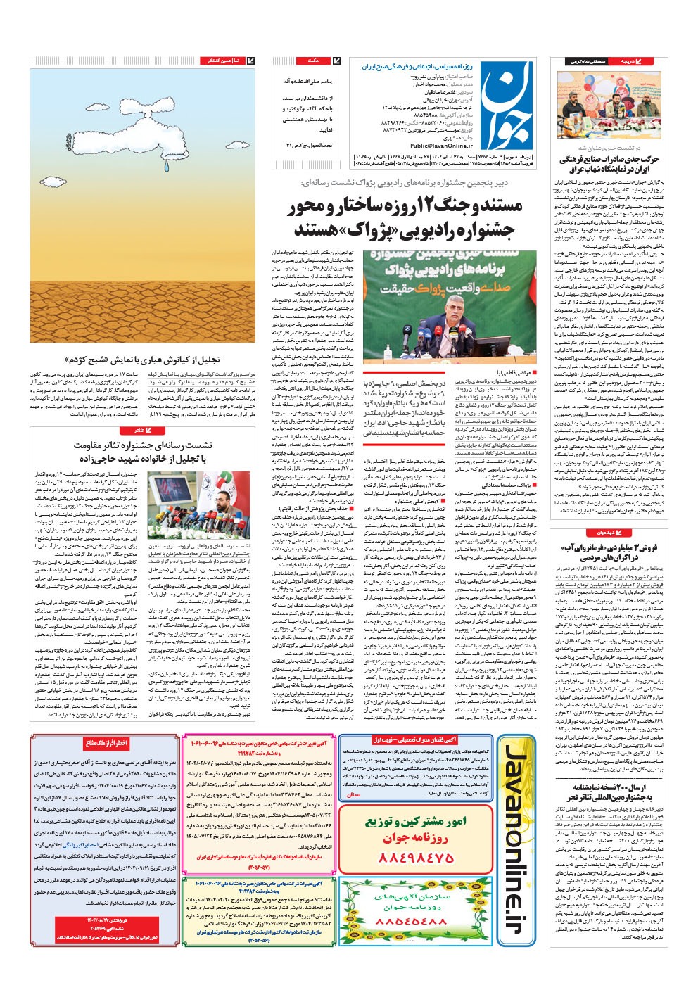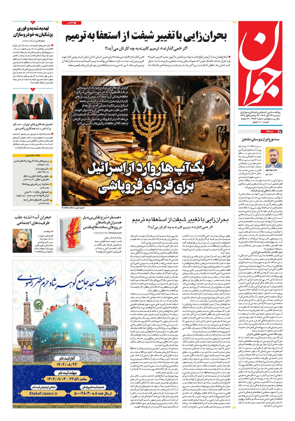 روزنامه جوان - سهشنبه ۲۷ آبان ۱۴۰۴ - شماره ۷۴۵۴