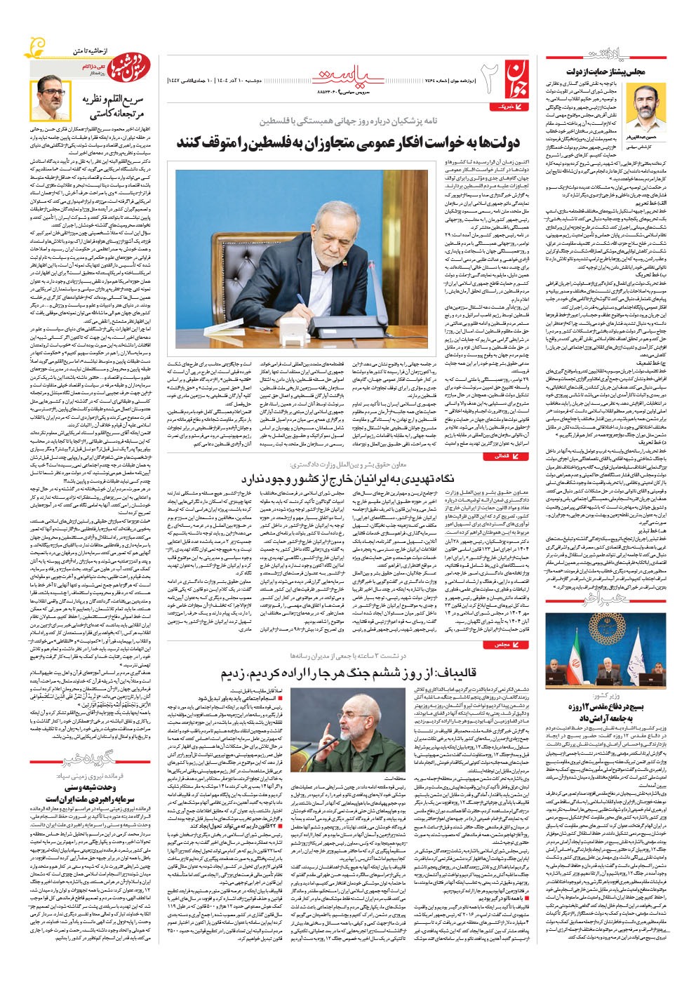 روزنامه جوان - دوشنبه ۱۰ آذر ۱۴۰۴ - شماره ۷۴۶۴