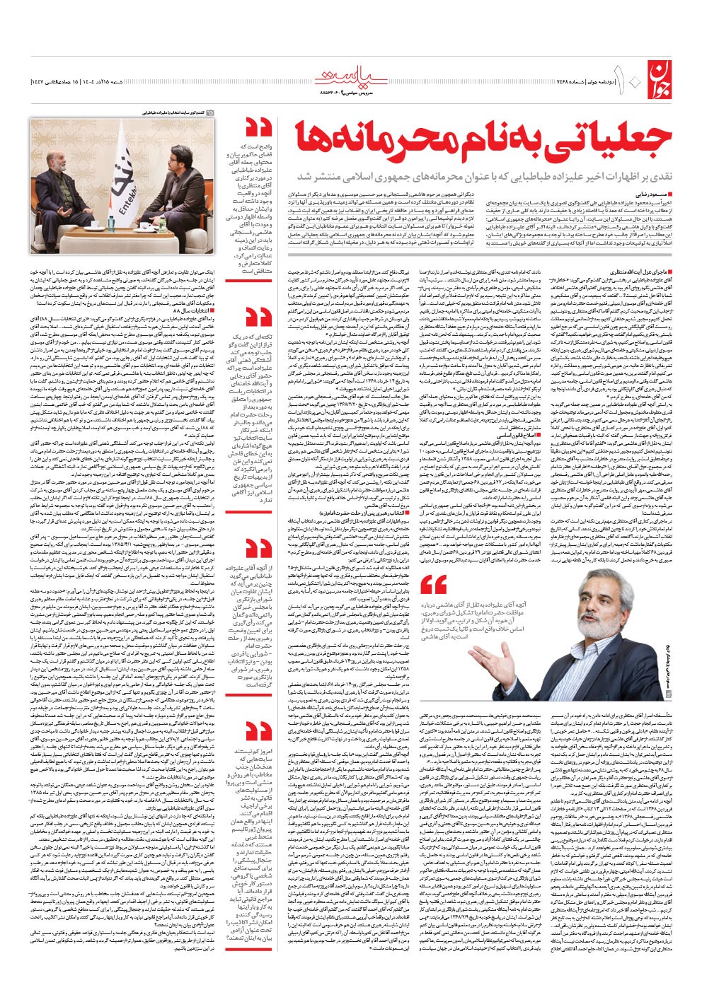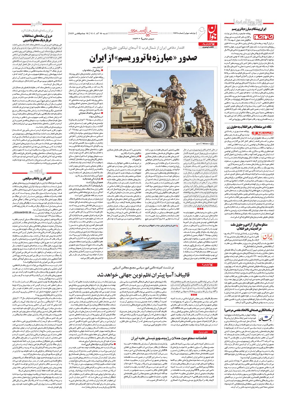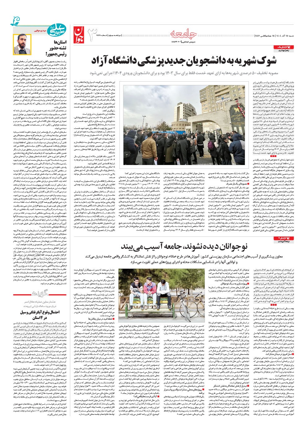 روزنامه جوان - شنبه ۱۵ آذر ۱۴۰۴ - شماره ۷۴۶۸