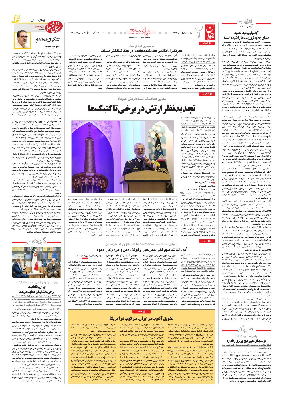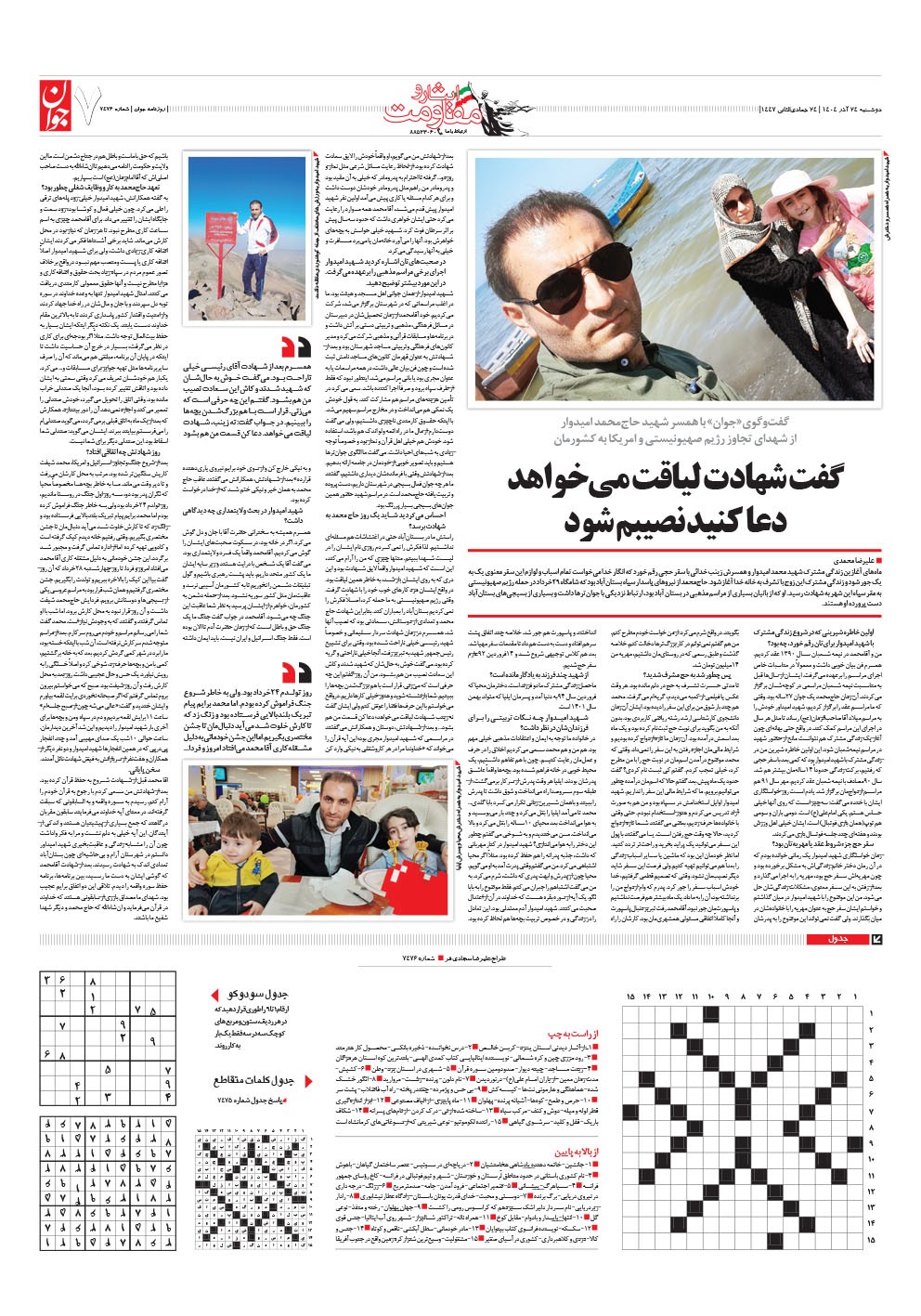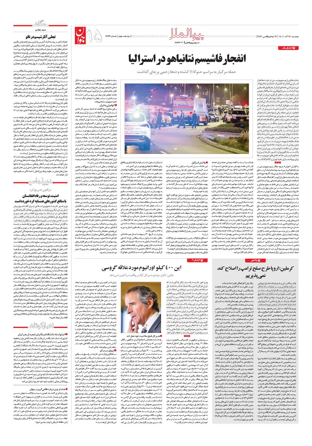 روزنامه جوان - دوشنبه ۲۴ آذر ۱۴۰۴ - شماره ۷۴۷۶