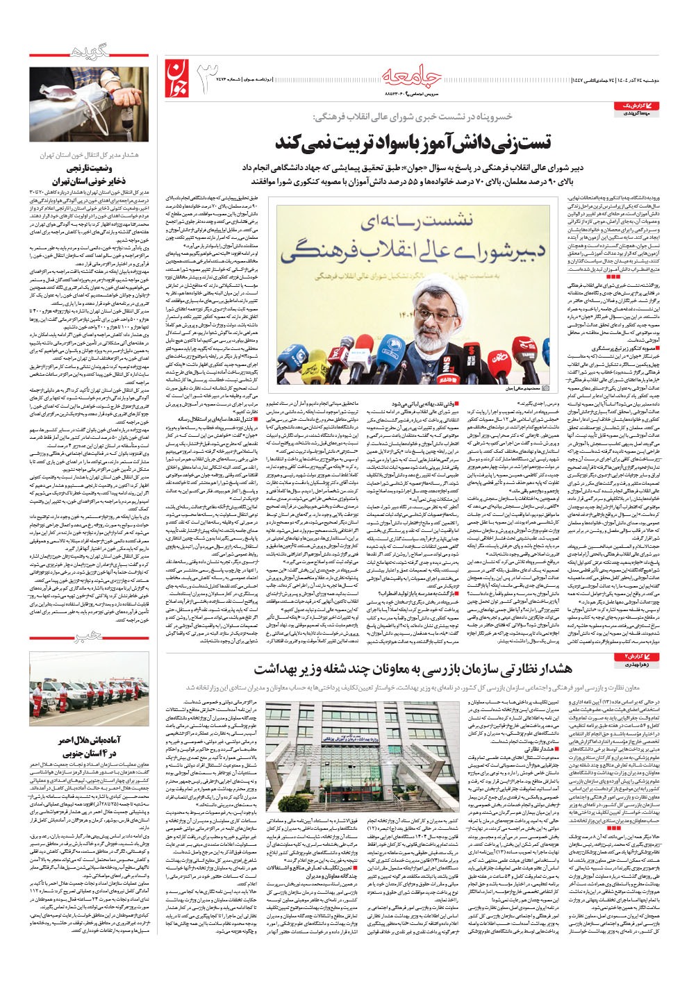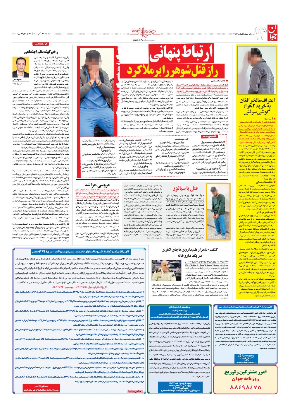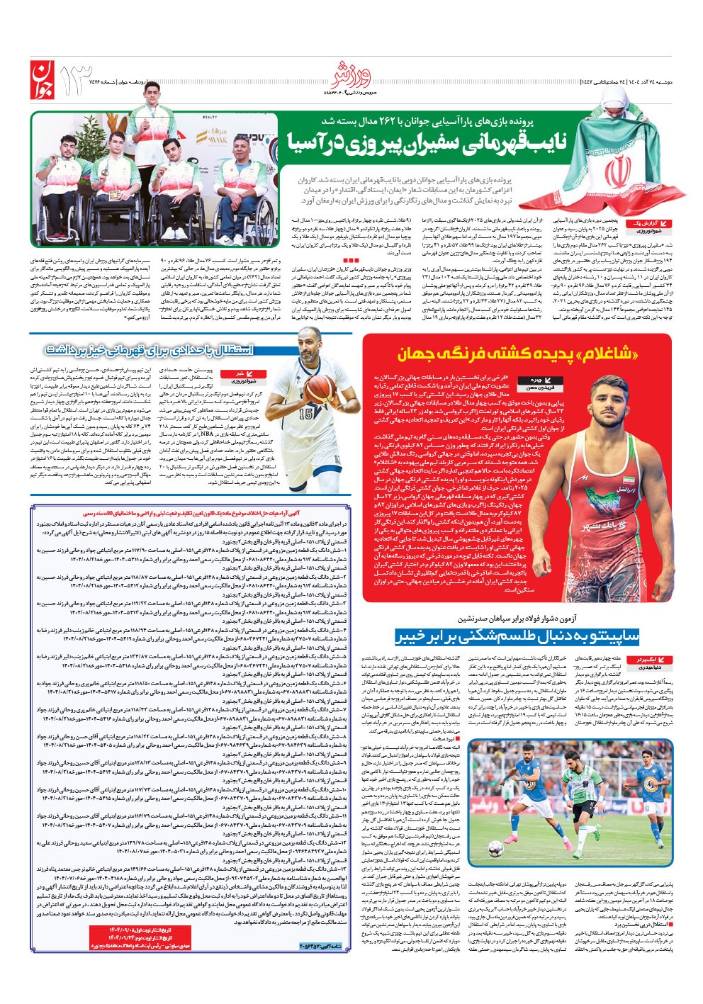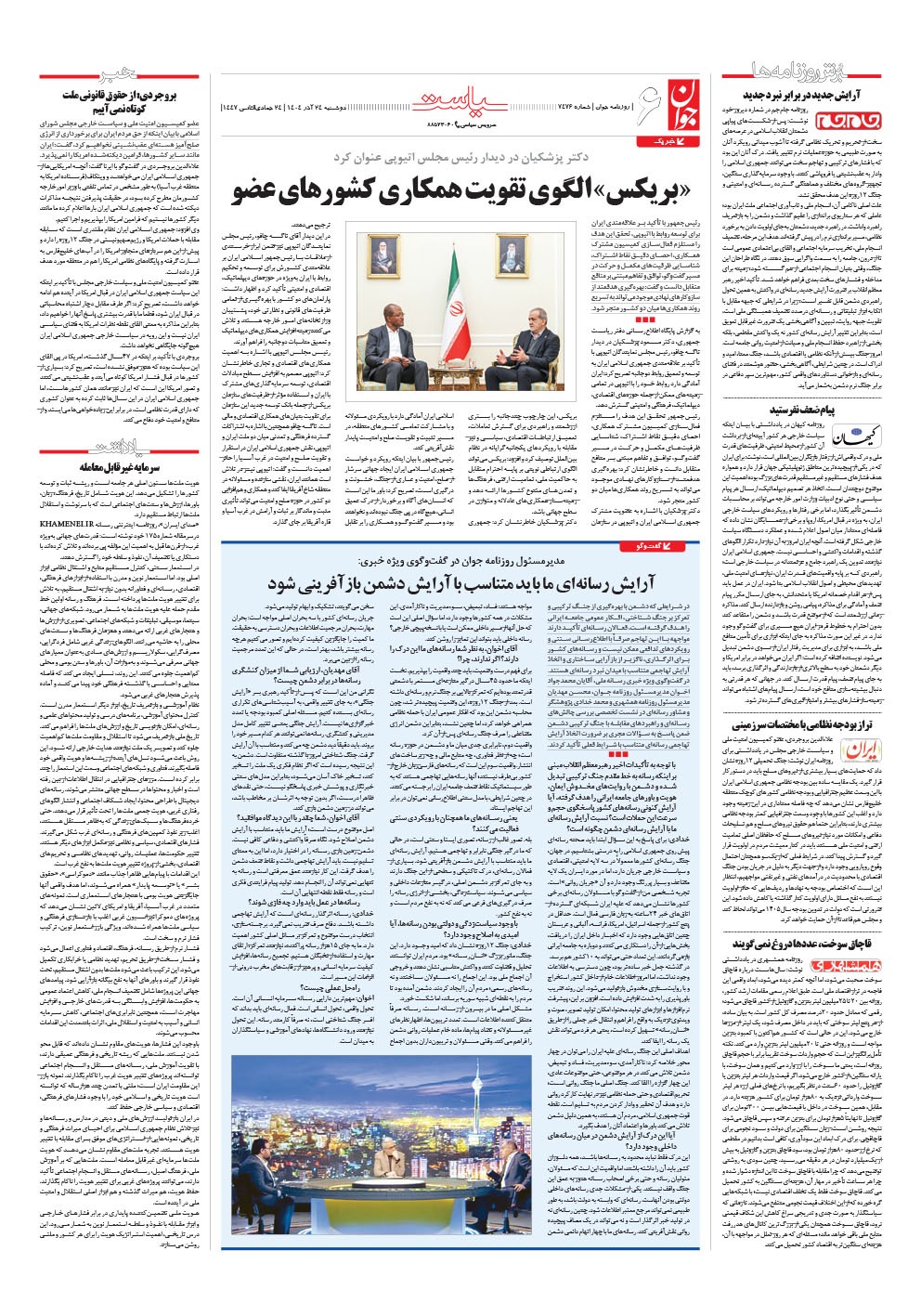 روزنامه جوان - دوشنبه ۲۴ آذر ۱۴۰۴ - شماره ۷۴۷۶
