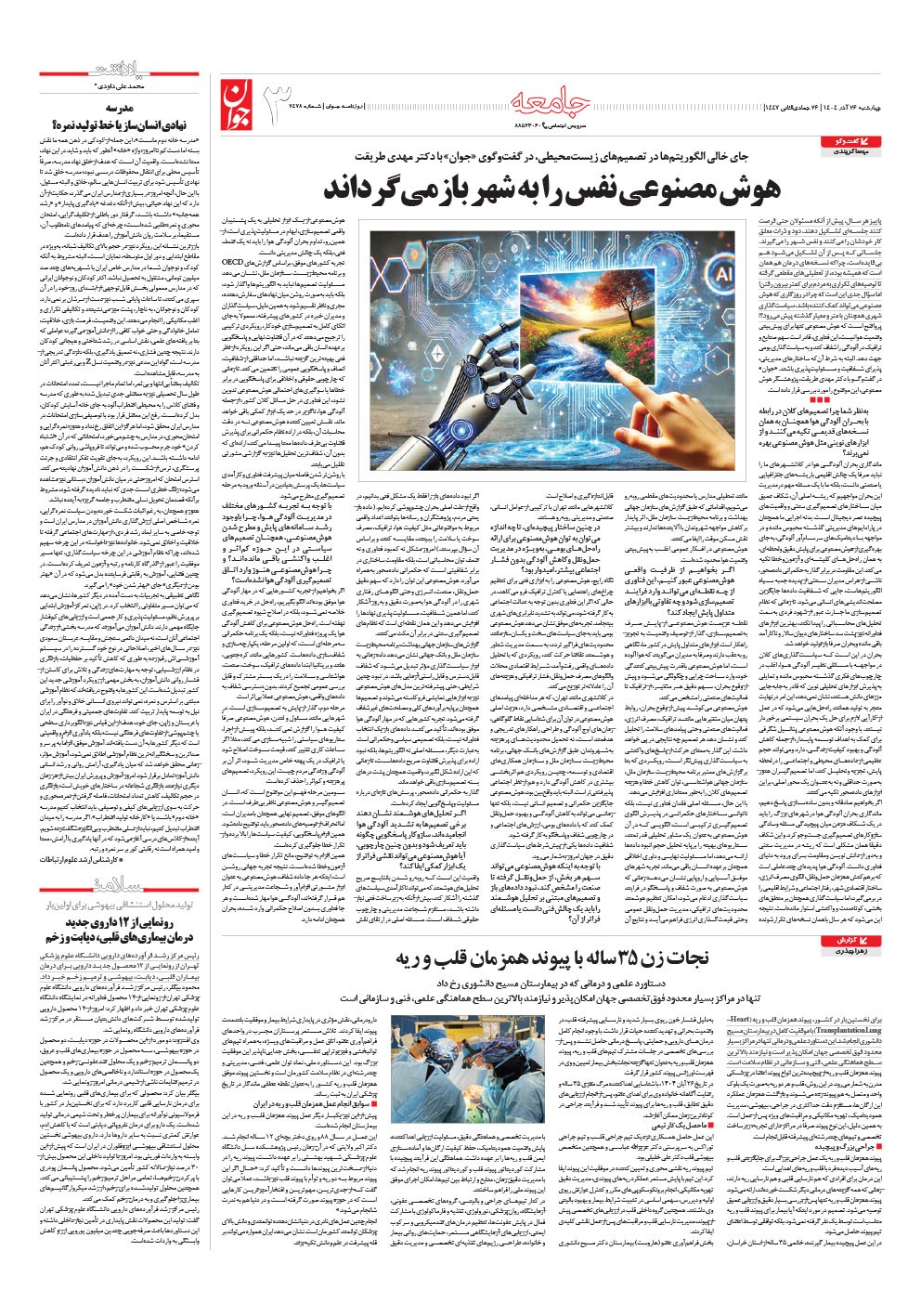 روزنامه جوان - چهارشنبه ۲۶ آذر ۱۴۰۴ - شماره ۷۴۷۸