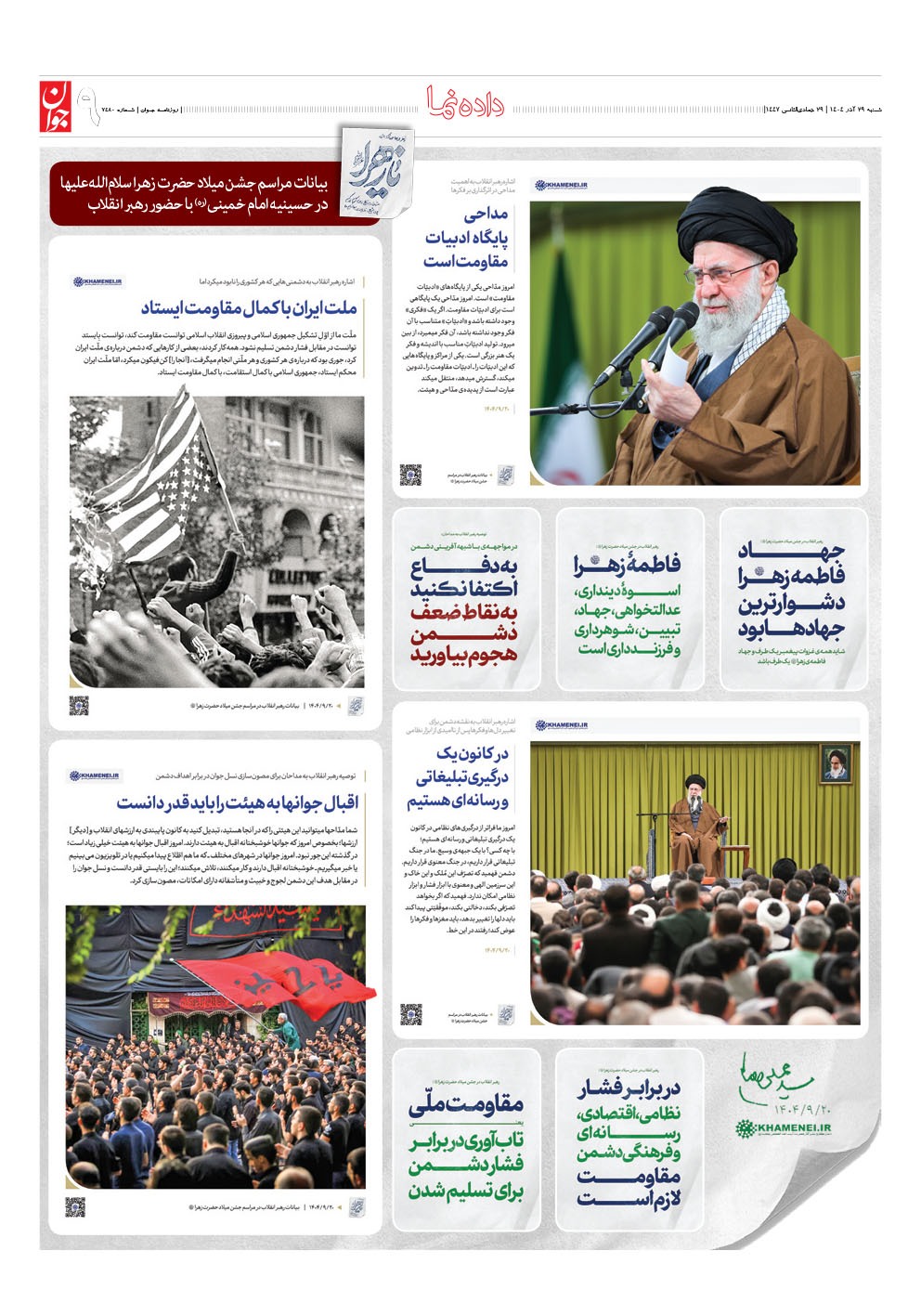 روزنامه جوان - شنبه ۲۹ آذر ۱۴۰۴ - شماره ۷۴۸۰