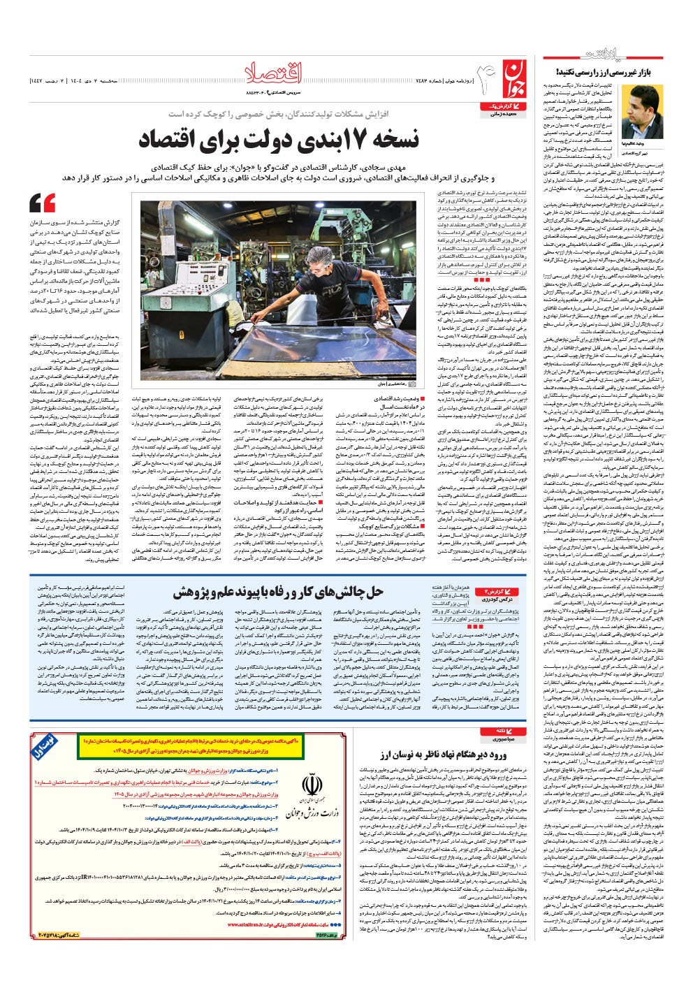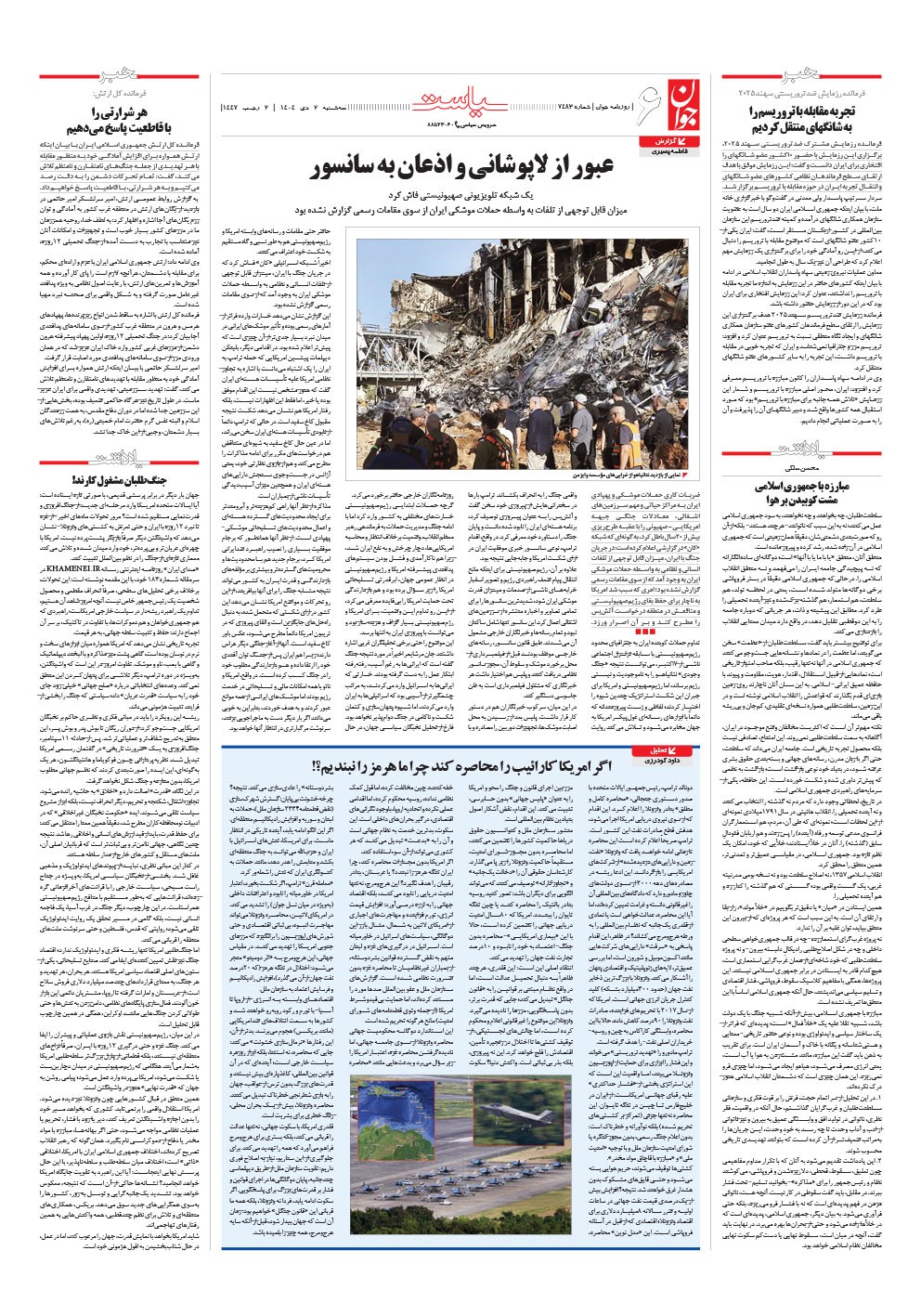 روزنامه جوان - سهشنبه ۰۲ دی ۱۴۰۴ - شماره ۷۴۸۳