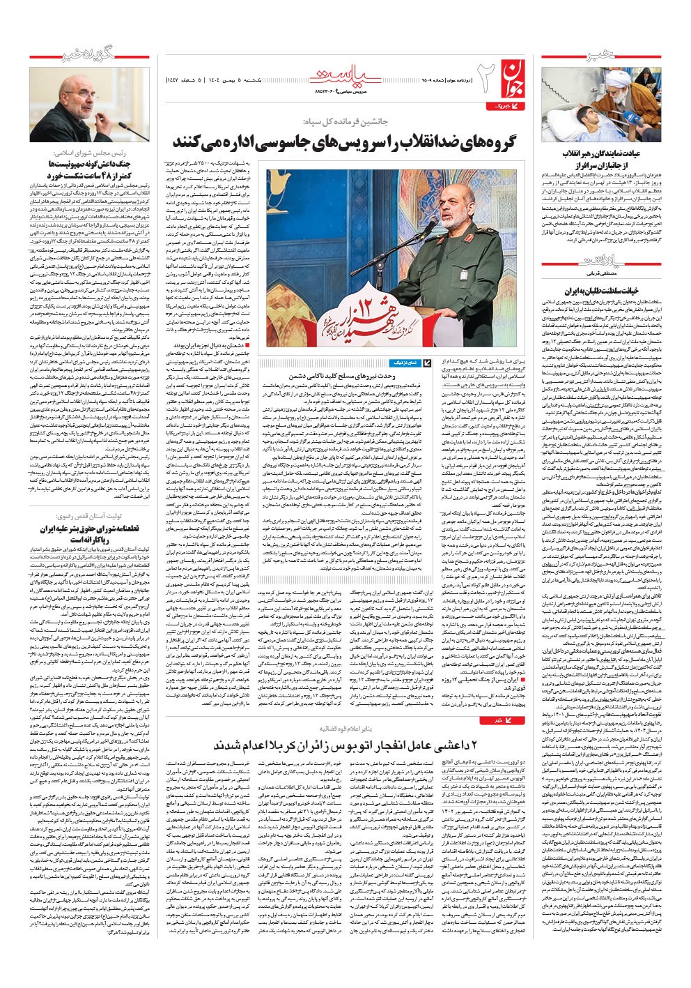 روزنامه جوان - يکشنبه ۰۵ بهمن ۱۴۰۴ - شماره ۷۵۰۹