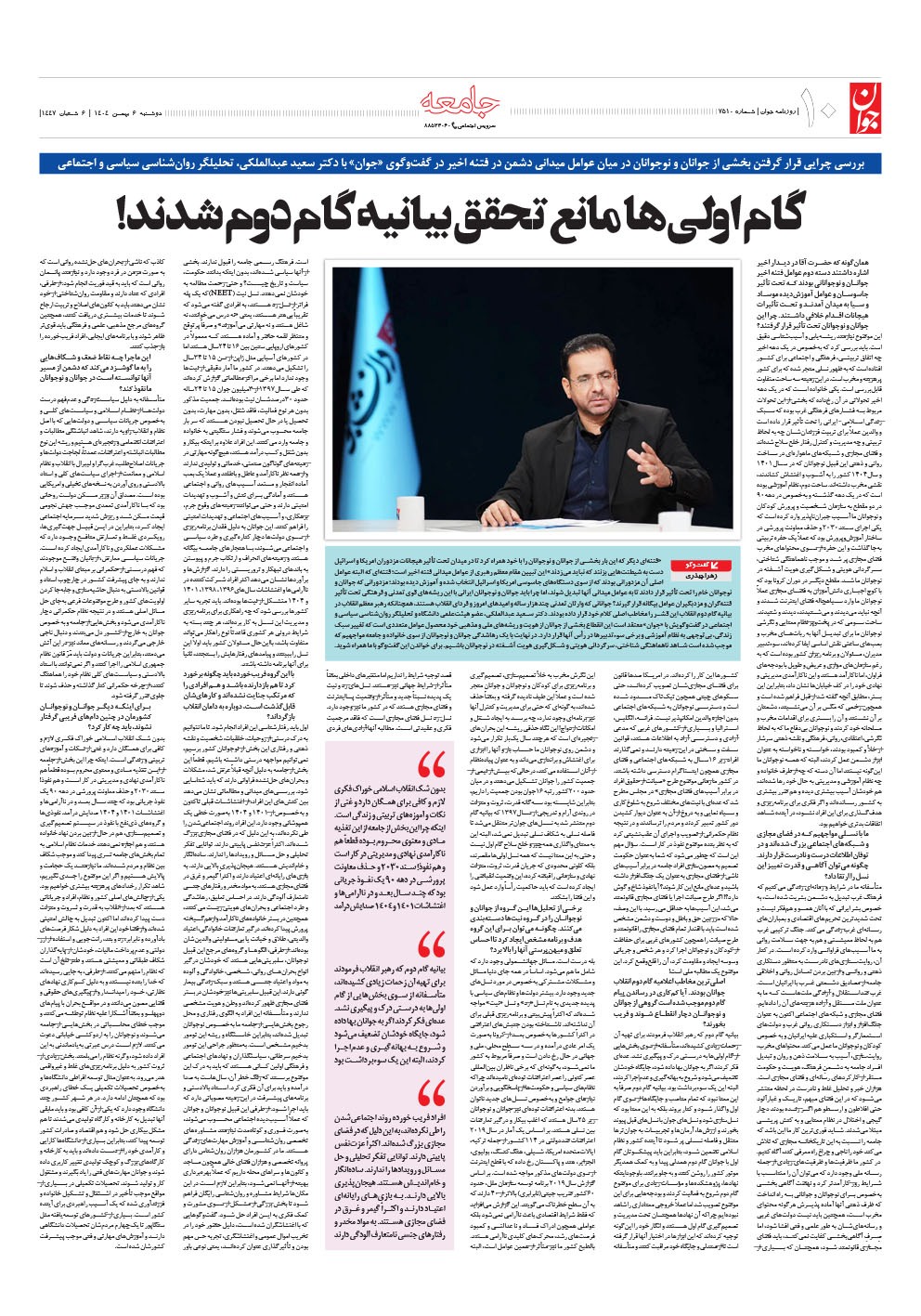 روزنامه جوان - دوشنبه ۰۶ بهمن ۱۴۰۴ - شماره ۷۵۱۰