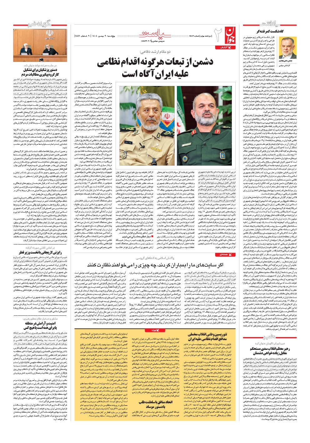 روزنامه جوان - پنجشنبه ۰۹ بهمن ۱۴۰۴ - شماره ۷۵۱۳