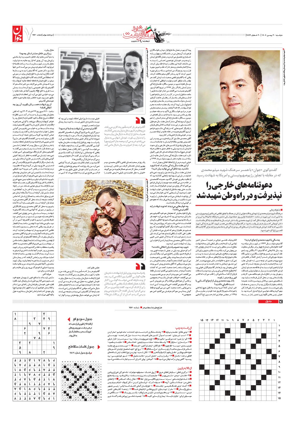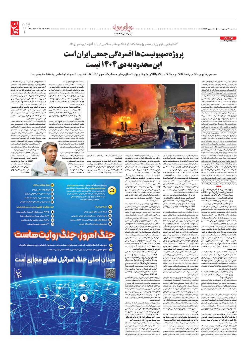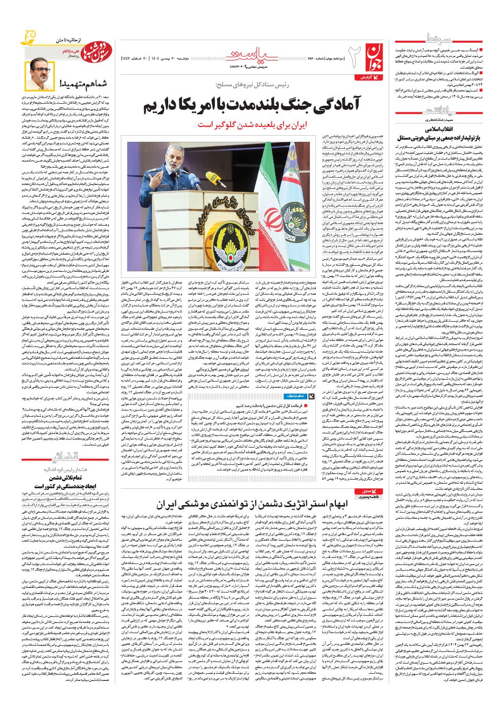 روزنامه جوان - دوشنبه ۲۰ بهمن ۱۴۰۴ - شماره ۷۵۲۰