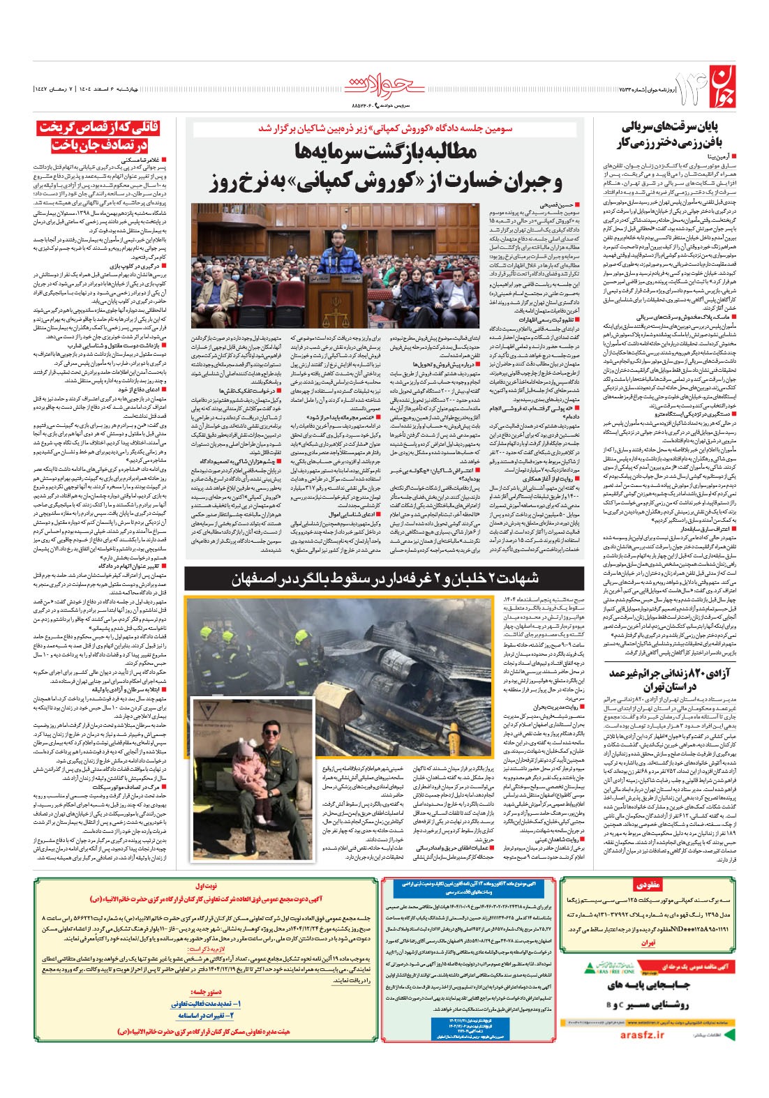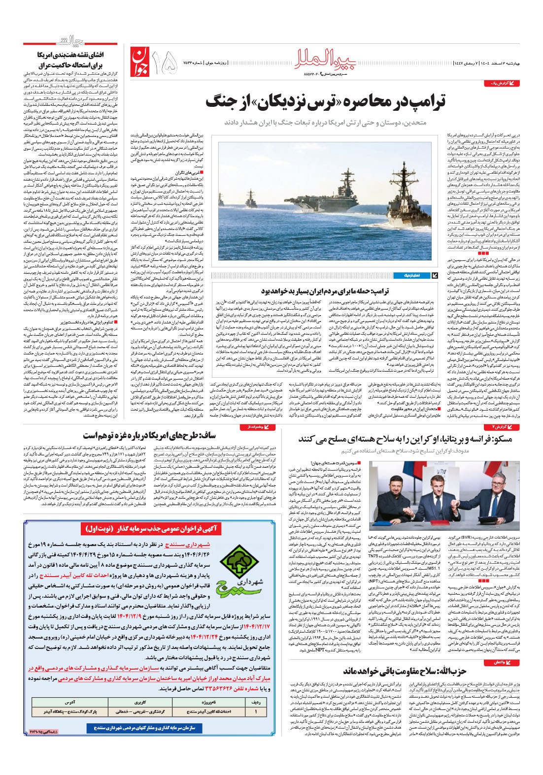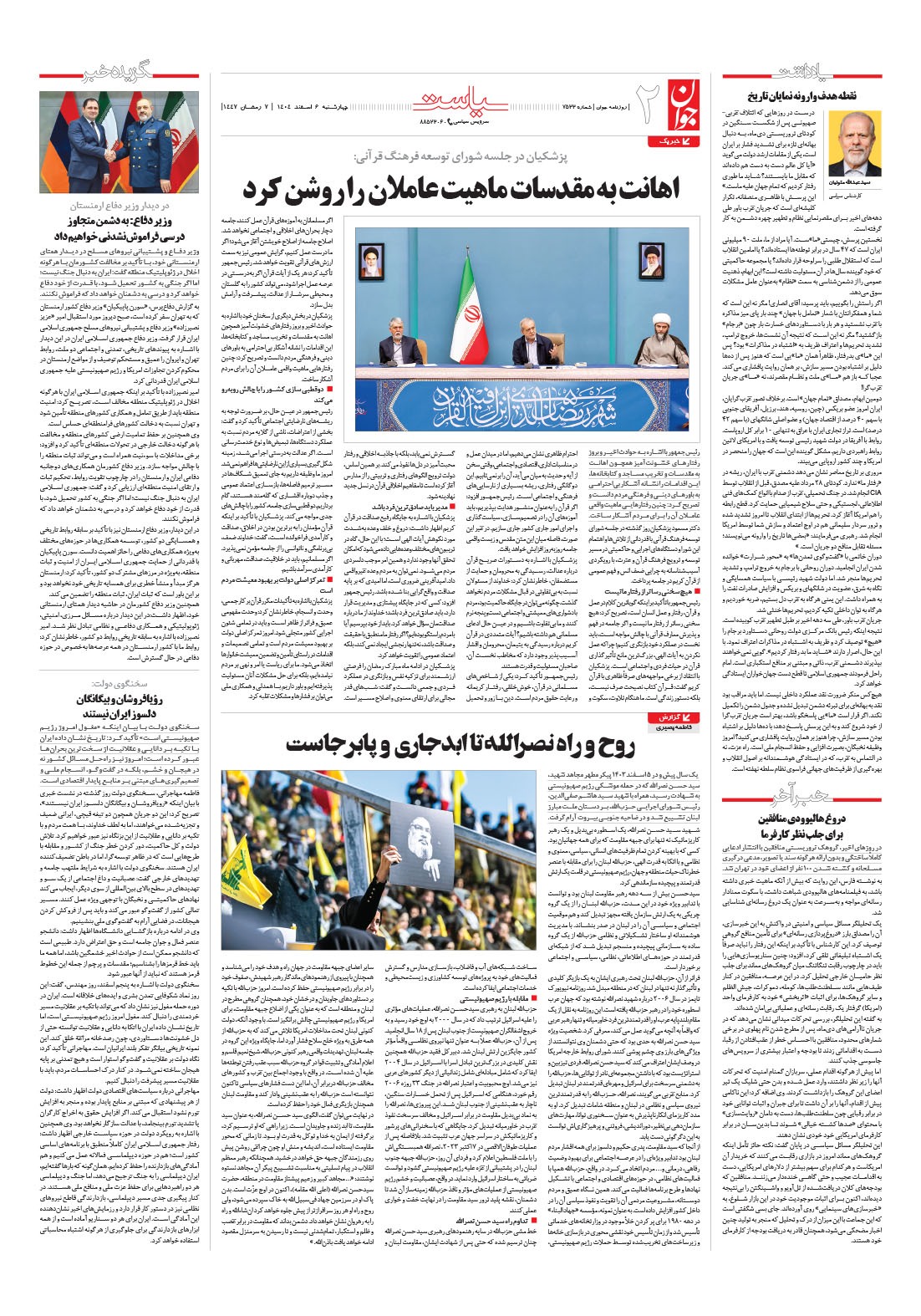 روزنامه جوان - چهارشنبه ۰۶ اسفند ۱۴۰۴ - شماره ۷۵۳۳