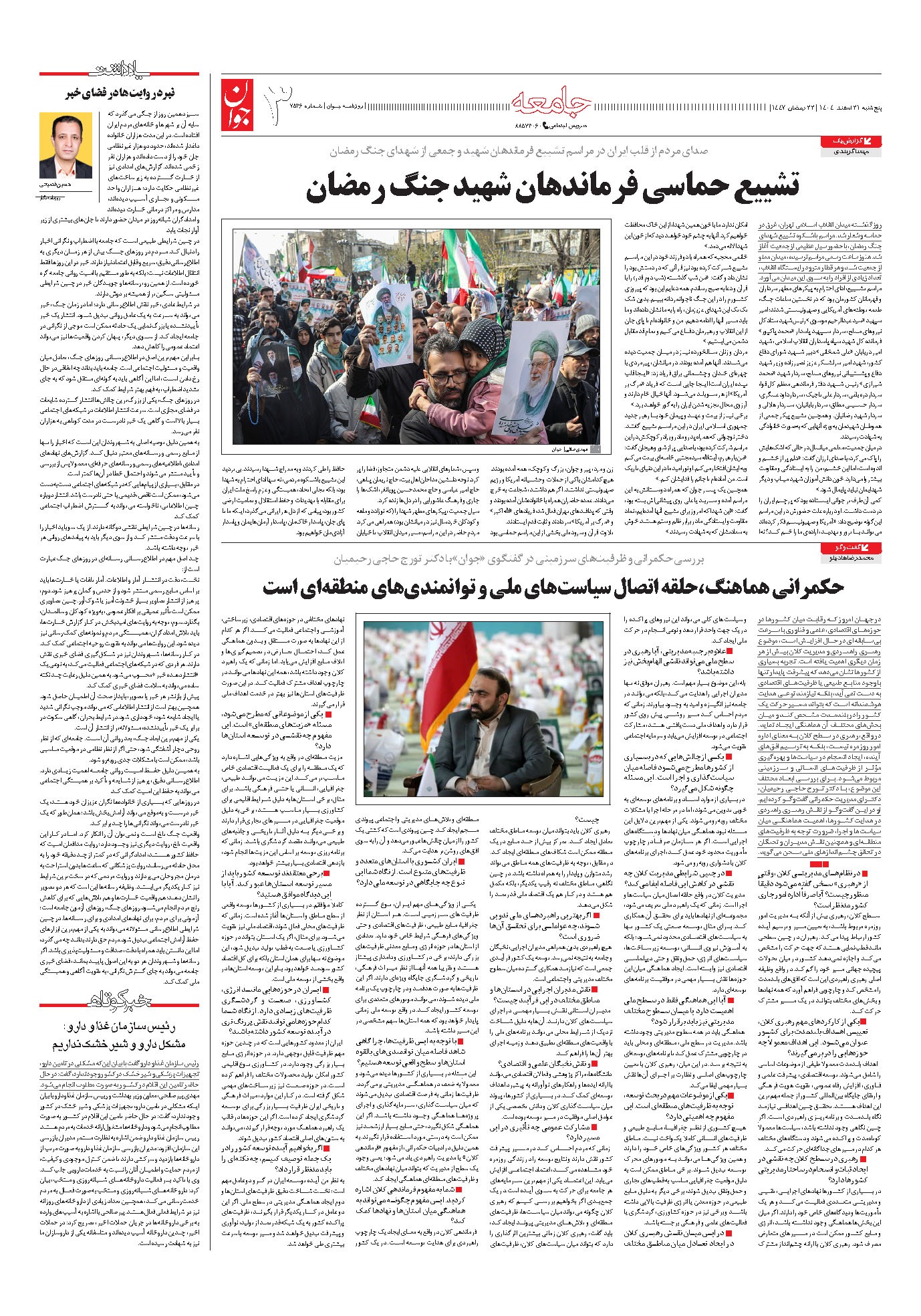 روزنامه جوان - پنجشنبه ۲۱ اسفند ۱۴۰۴ - شماره ۷۵۴۶