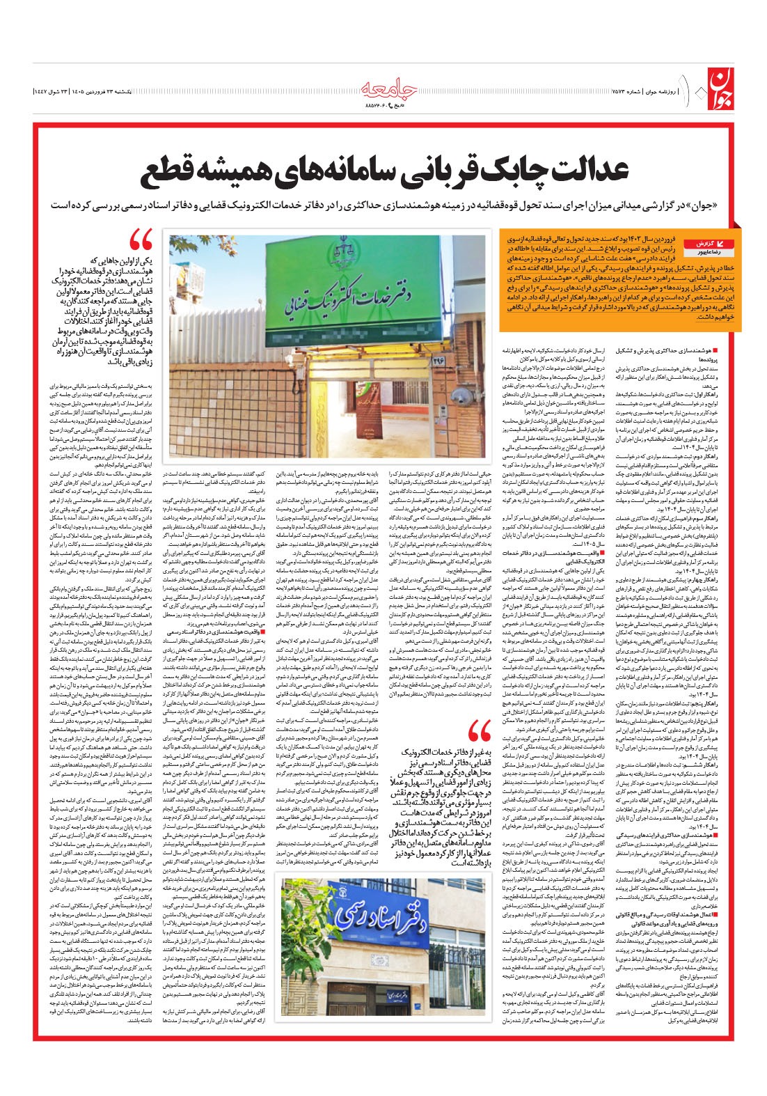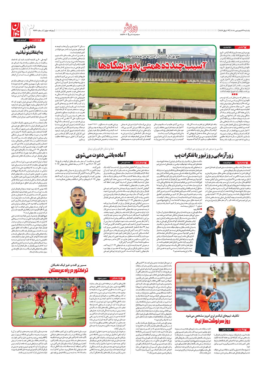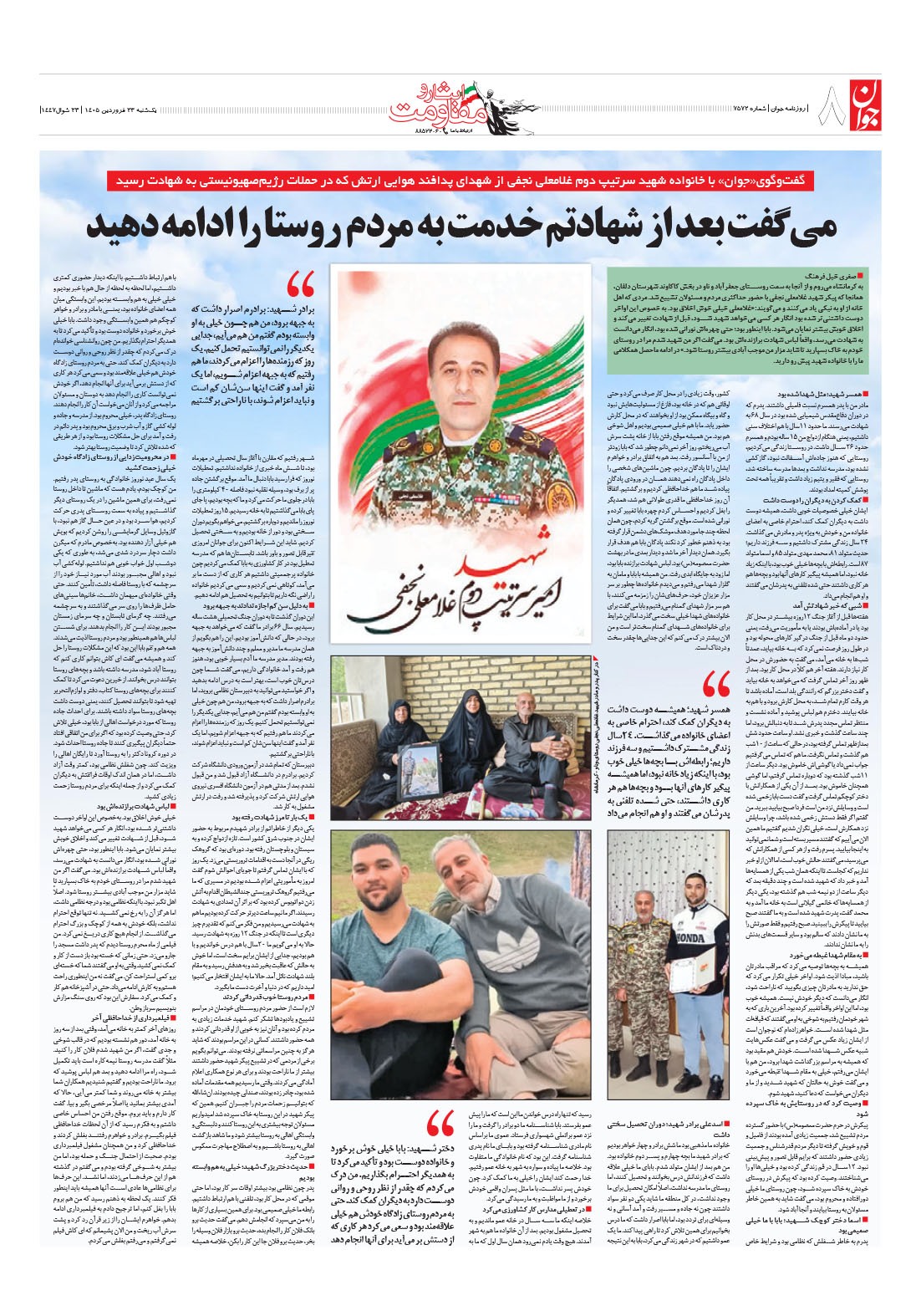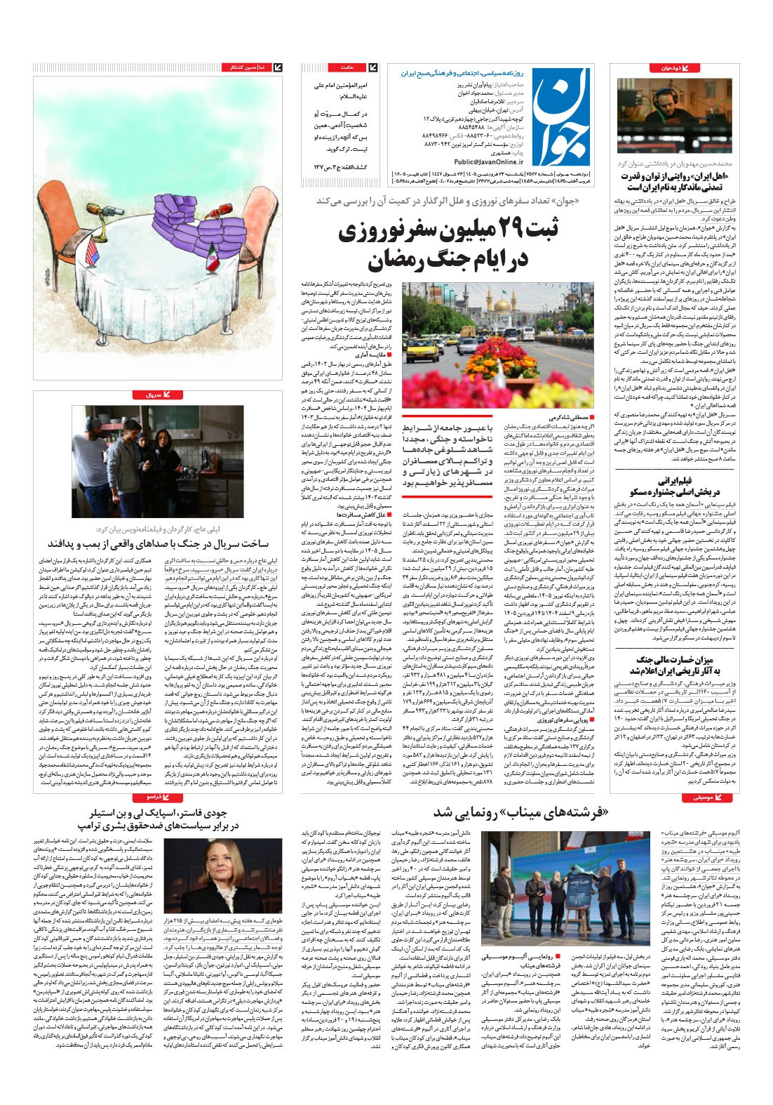 روزنامه جوان - يکشنبه ۲۳ فروردين ۱۴۰۵ - شماره ۷۵۷۲