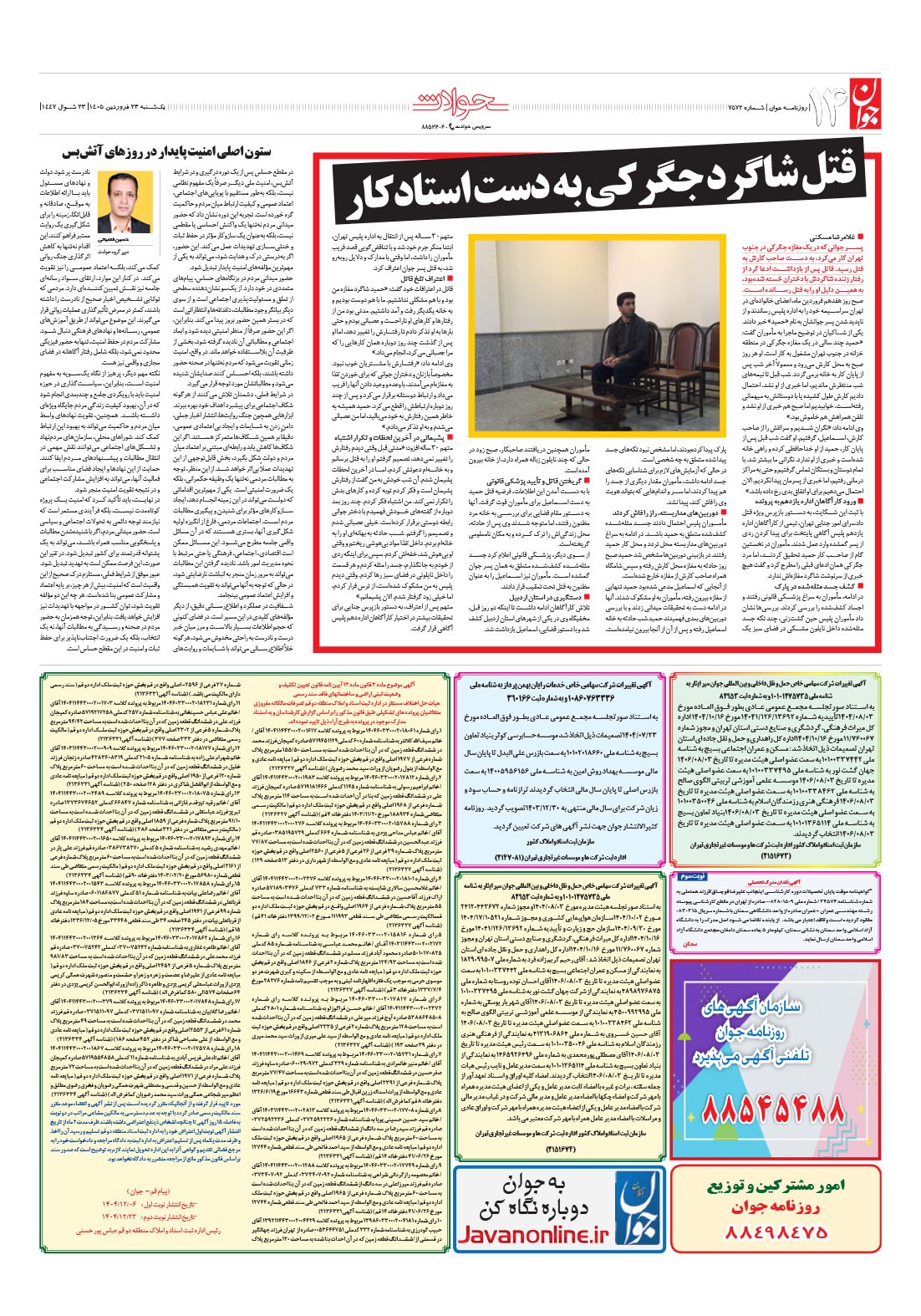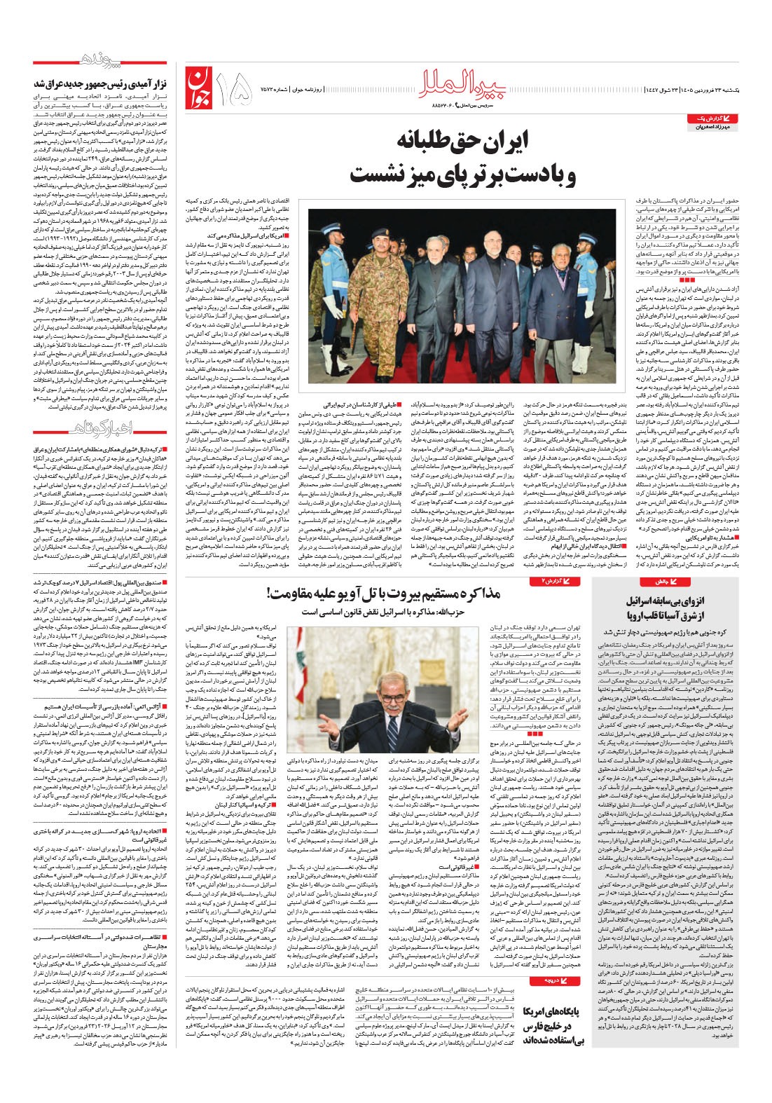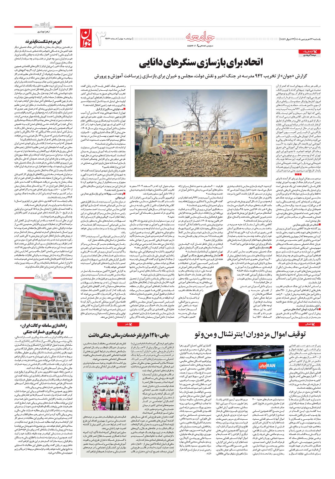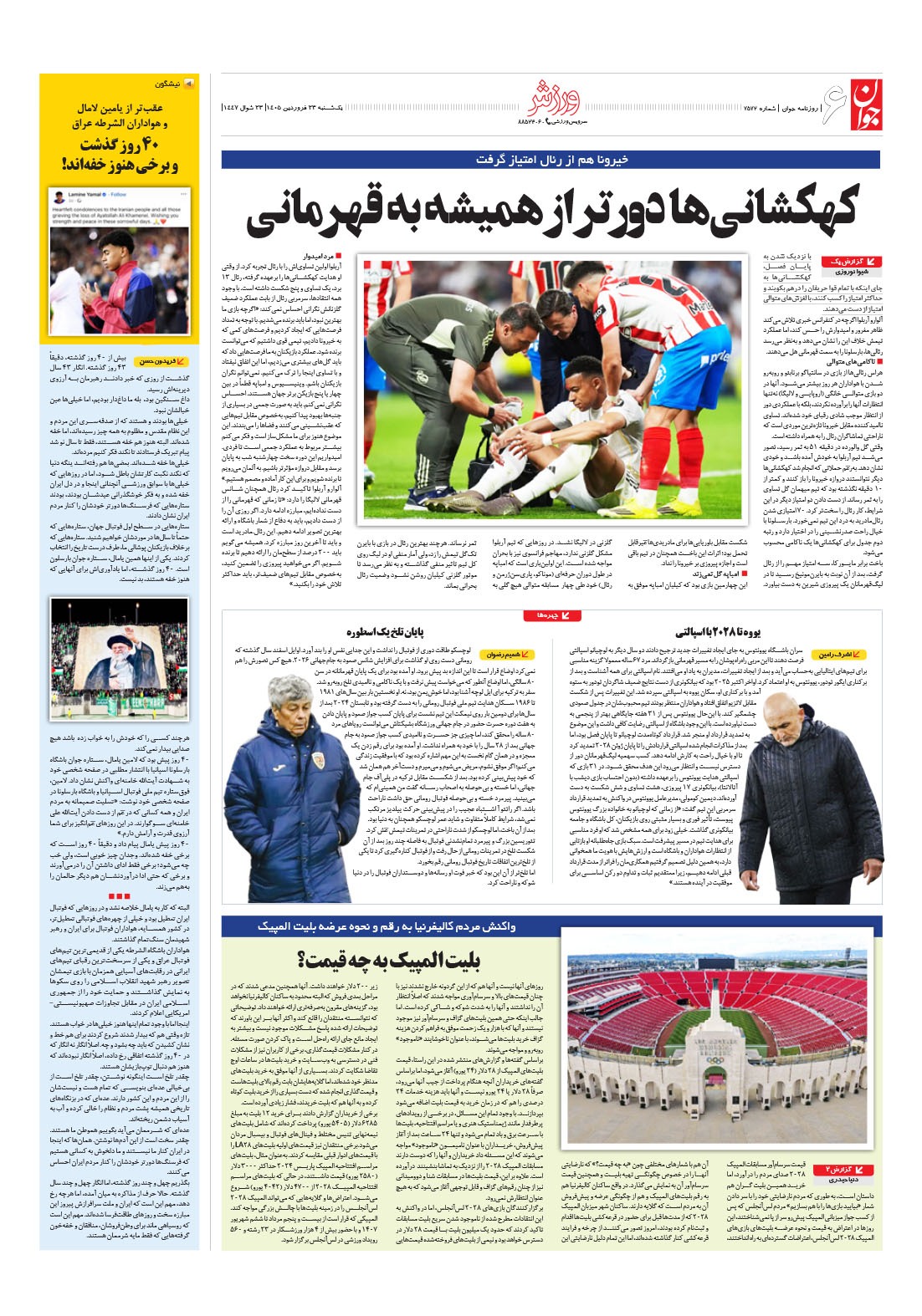 روزنامه جوان - يکشنبه ۲۳ فروردين ۱۴۰۵ - شماره ۷۵۷۲