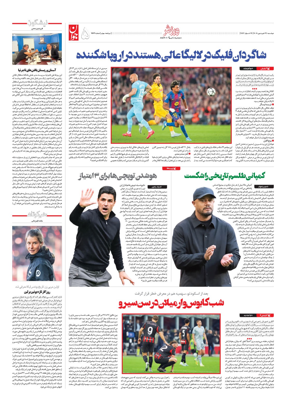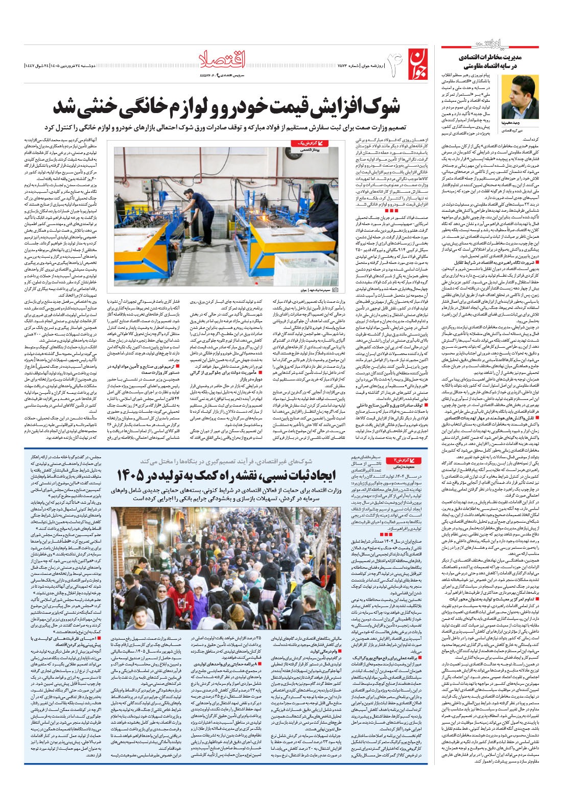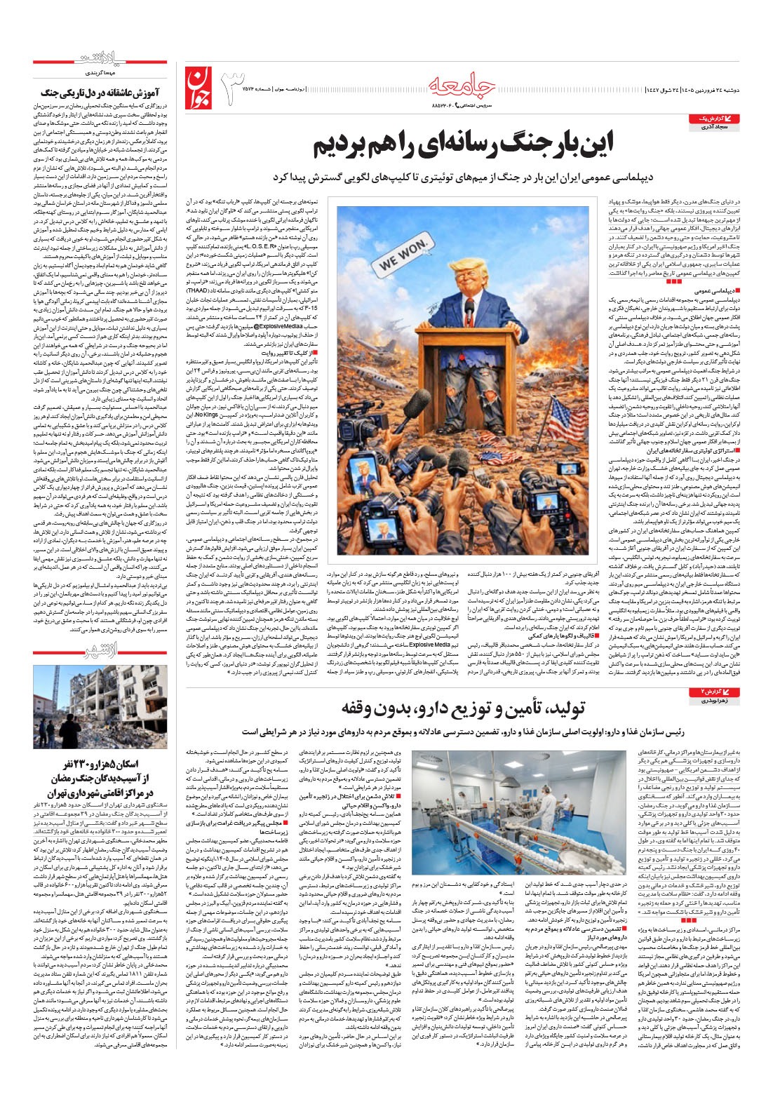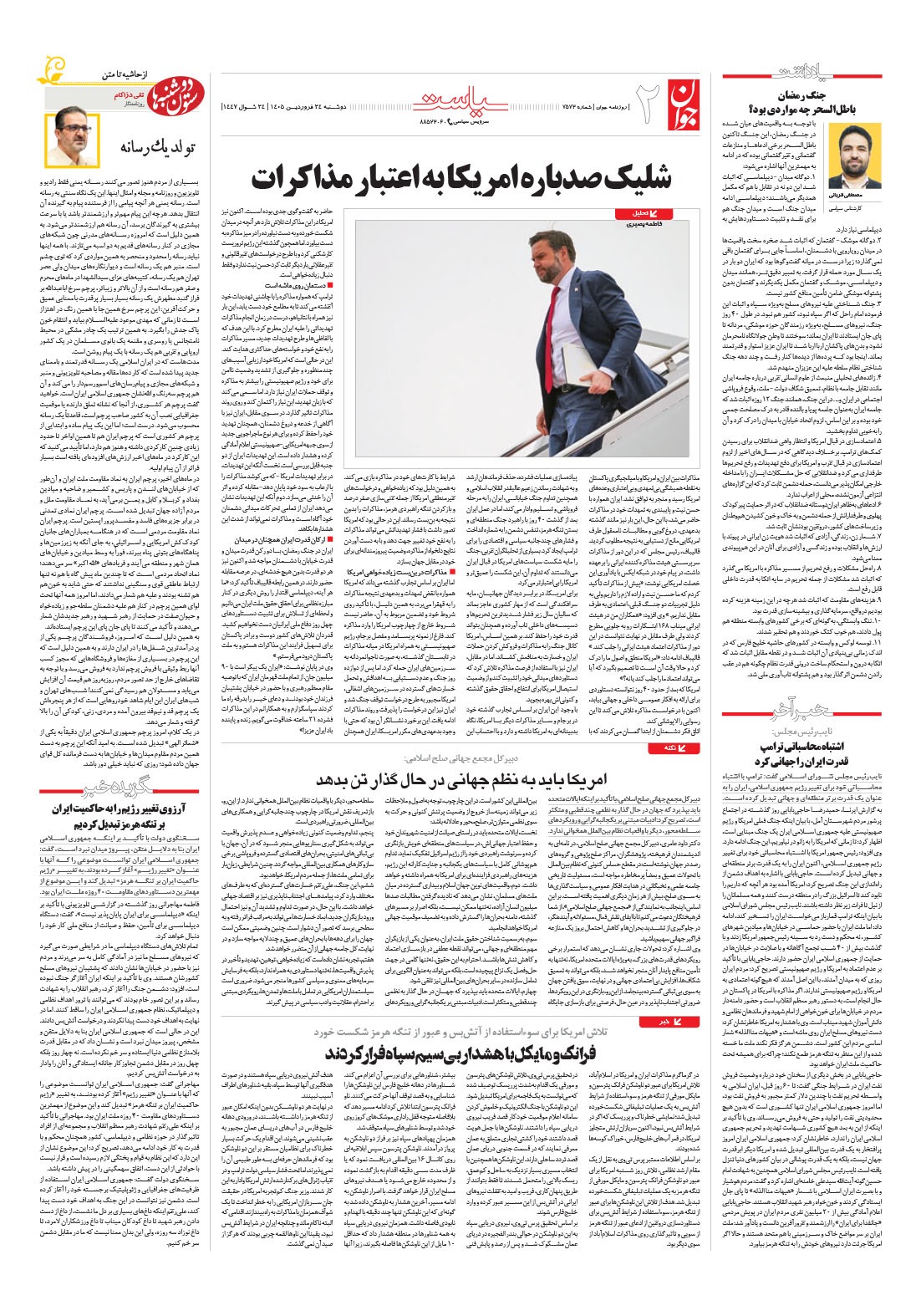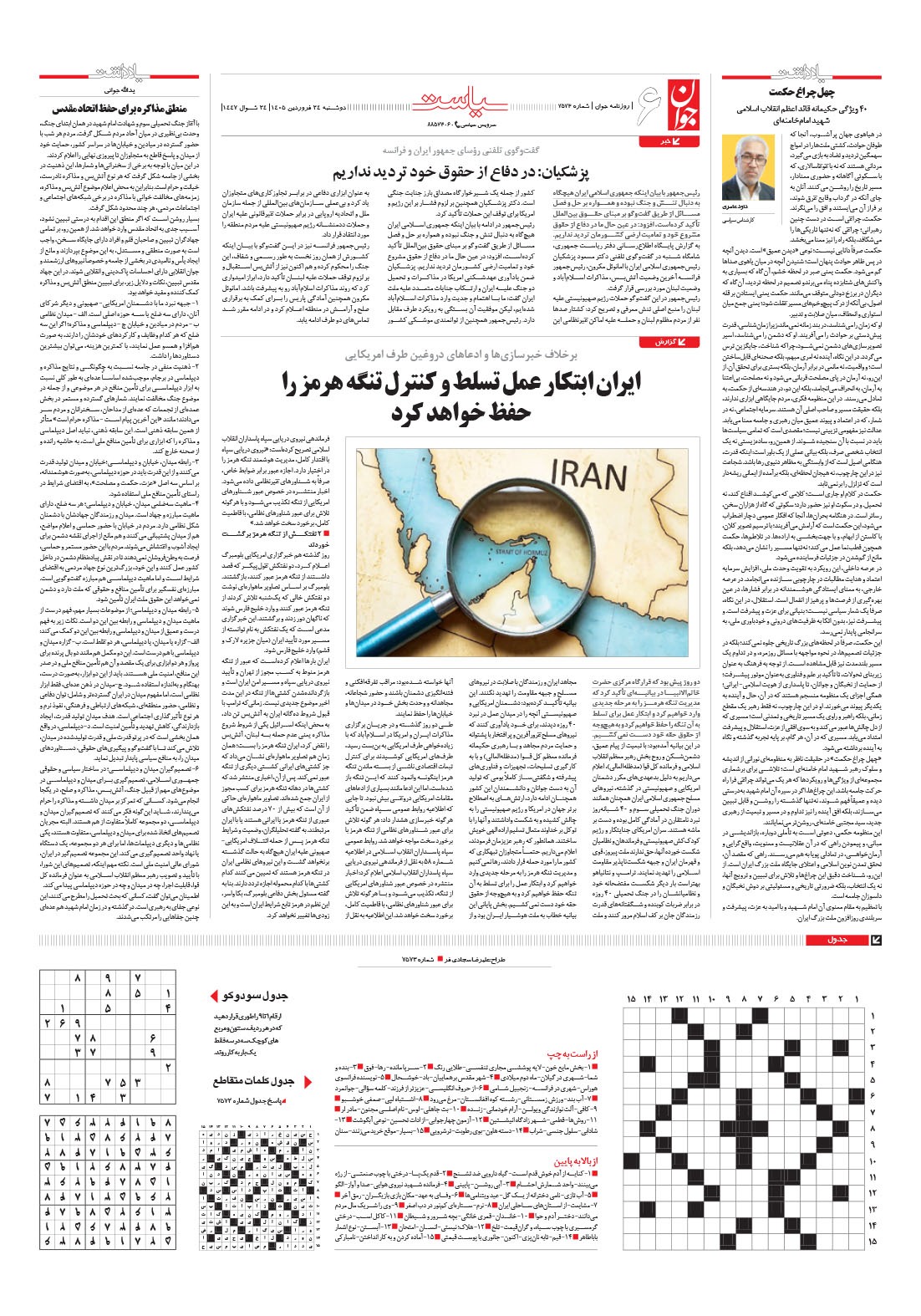 روزنامه جوان - دوشنبه ۲۴ فروردين ۱۴۰۵ - شماره ۷۵۷۳