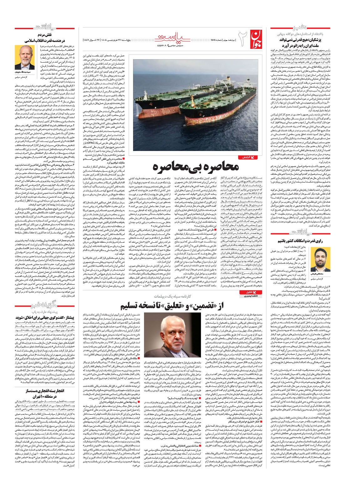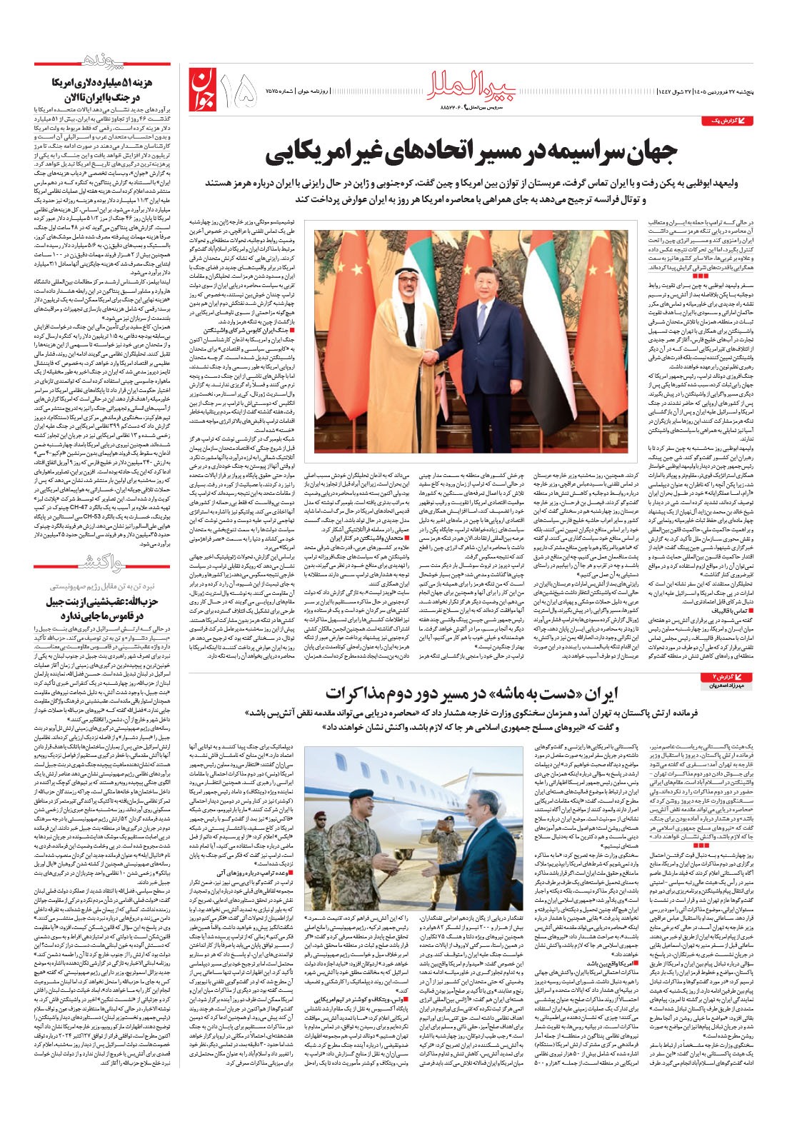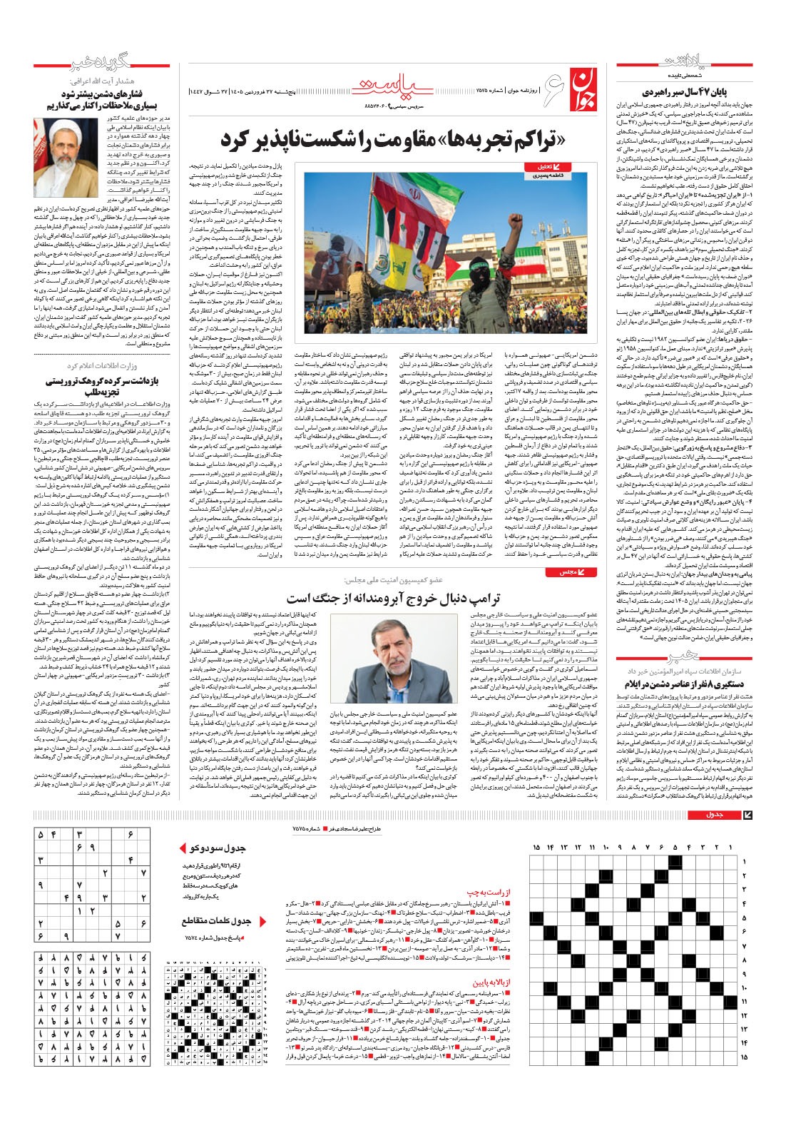 روزنامه جوان - پنجشنبه ۲۷ فروردين ۱۴۰۵ - شماره ۷۵۷۵