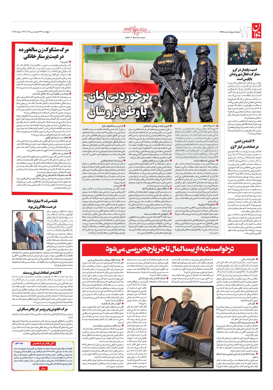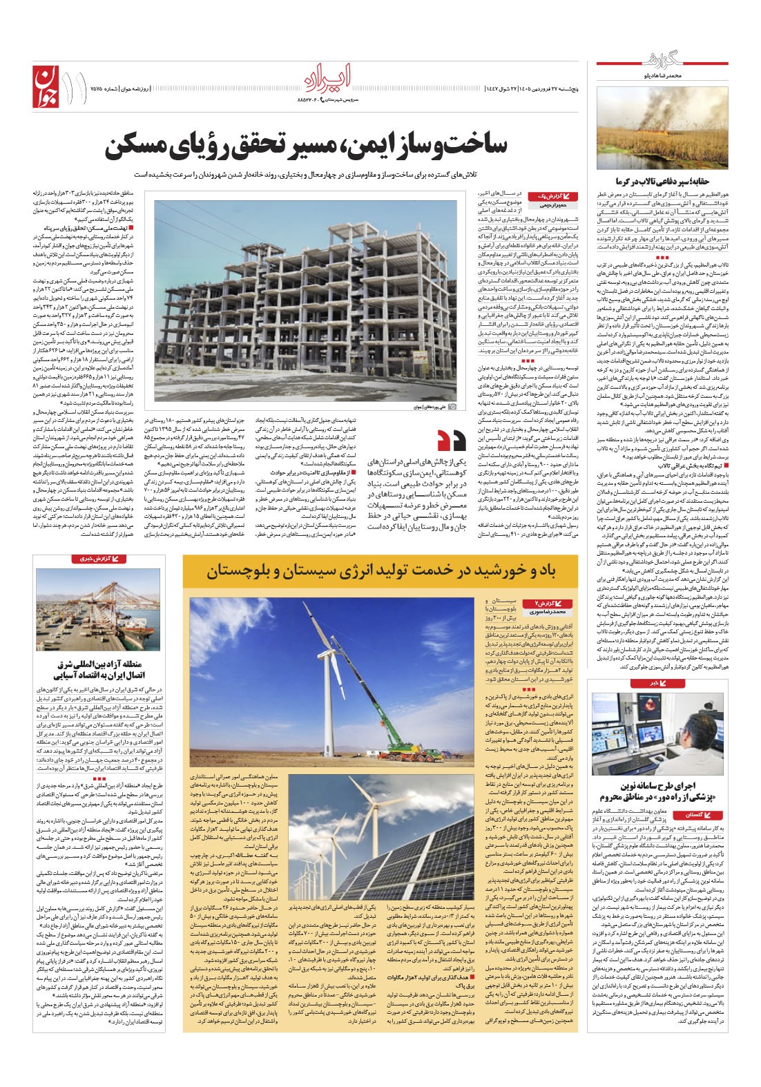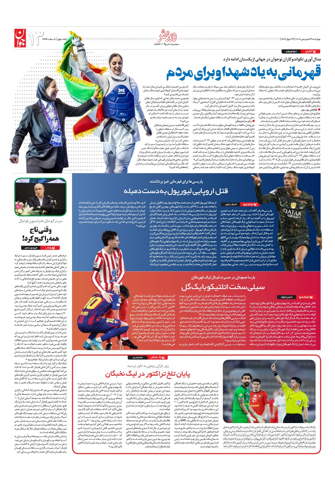 روزنامه جوان - پنجشنبه ۲۷ فروردين ۱۴۰۵ - شماره ۷۵۷۵