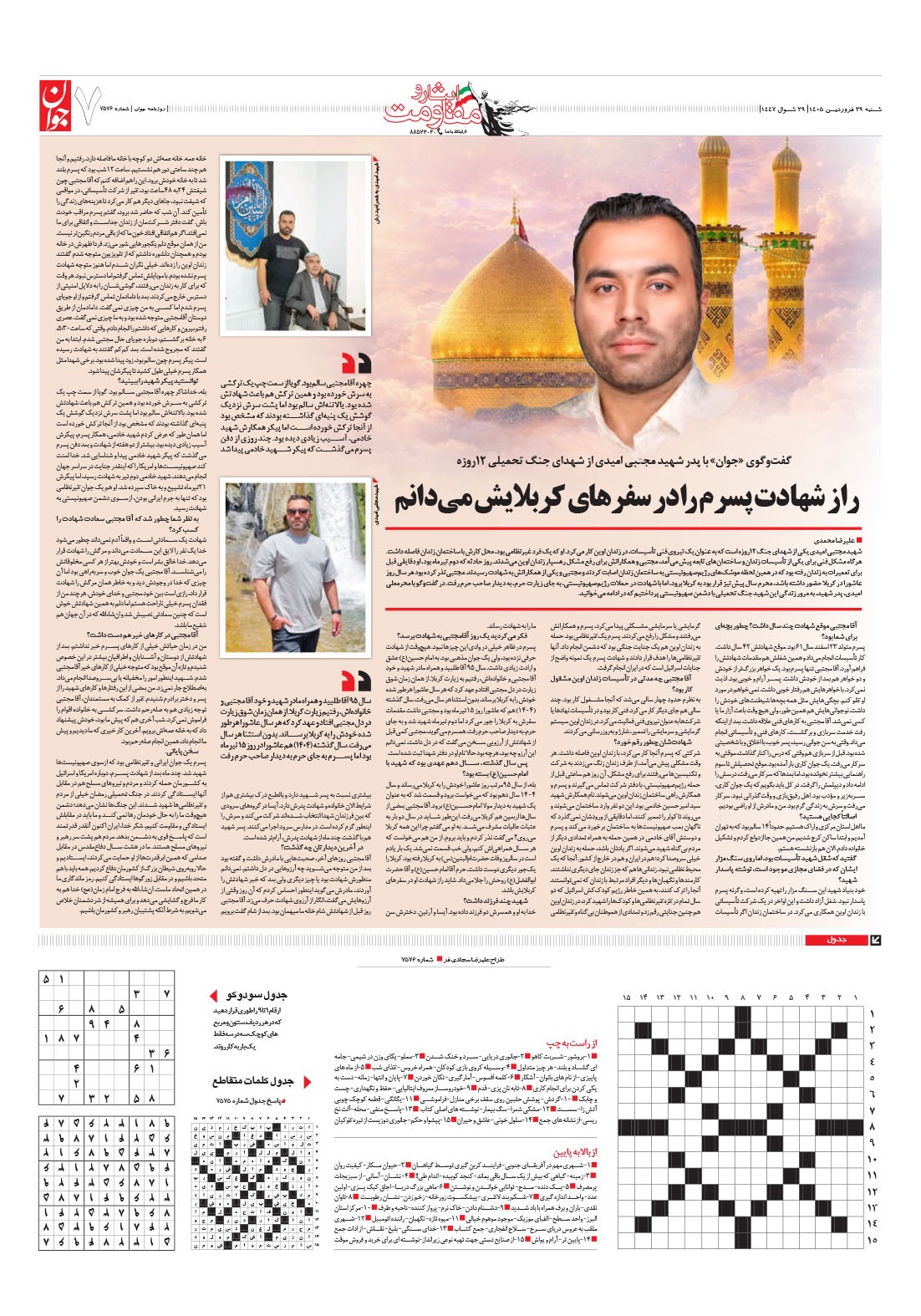 روزنامه جوان - شنبه ۲۹ فروردين ۱۴۰۵ - شماره ۷۵۷۶