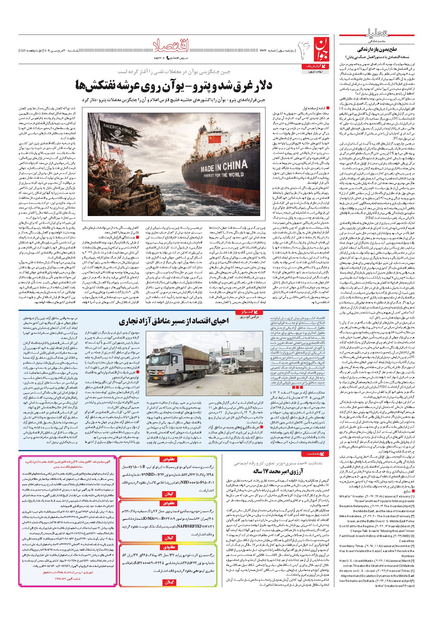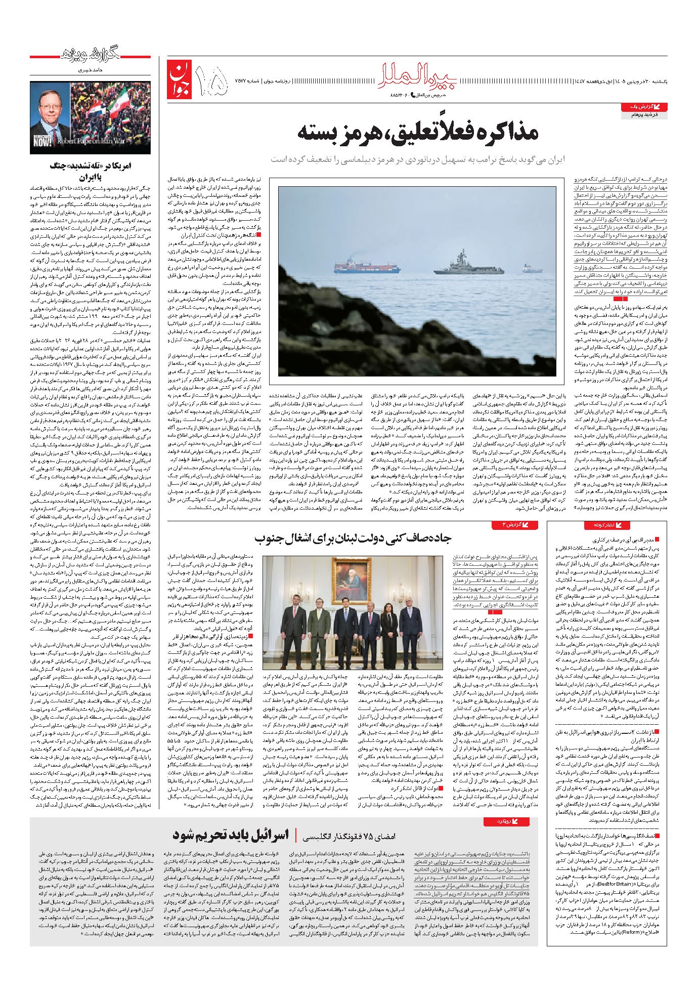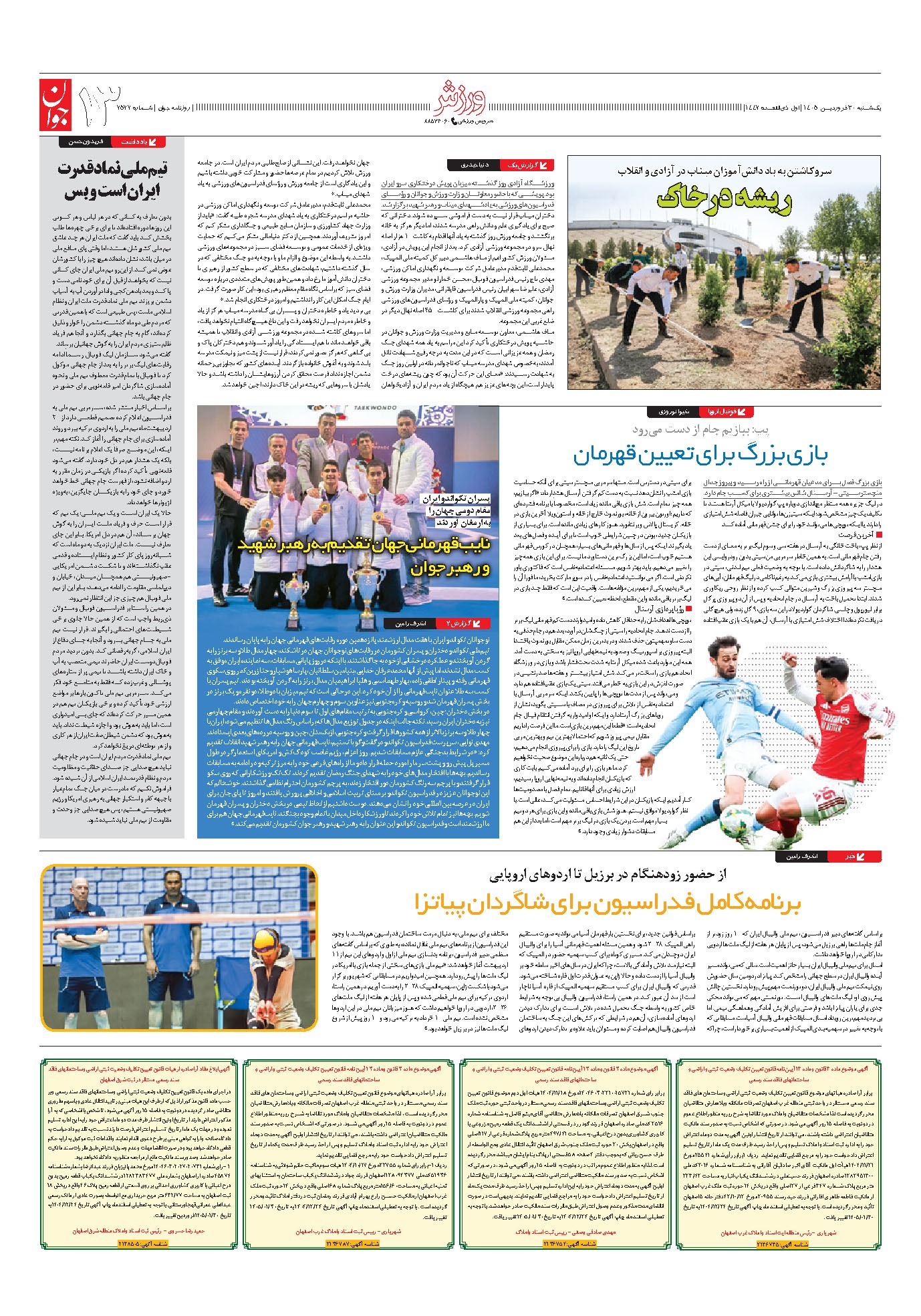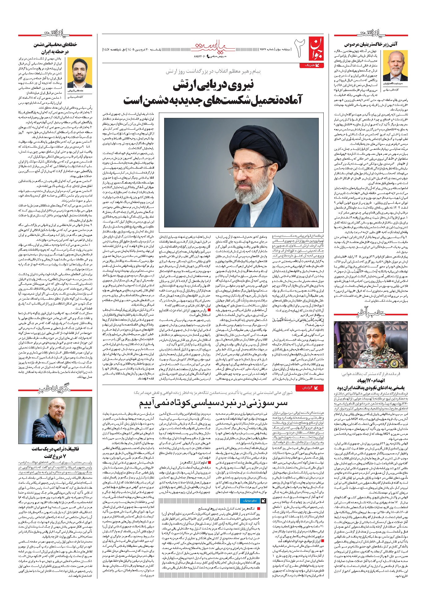 روزنامه جوان - يکشنبه ۳۰ فروردين ۱۴۰۵ - شماره ۷۵۷۷