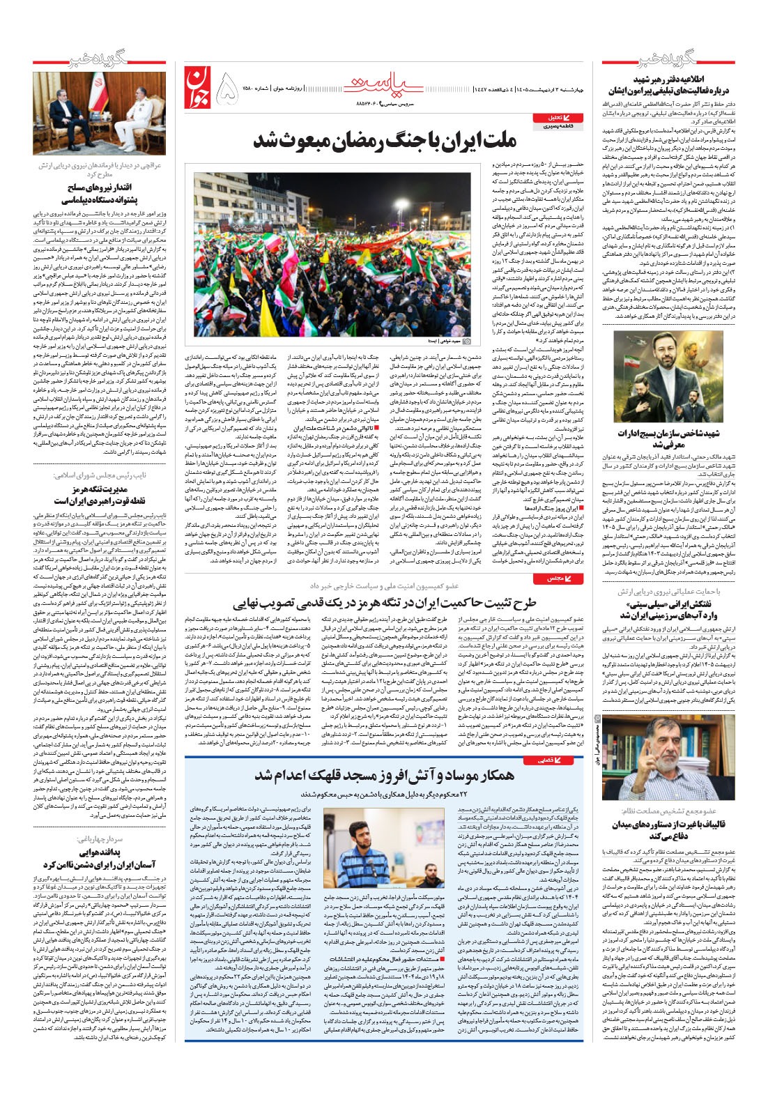 روزنامه جوان - چهارشنبه ۰۲ ارديبهشت ۱۴۰۵ - شماره ۷۵۸۰